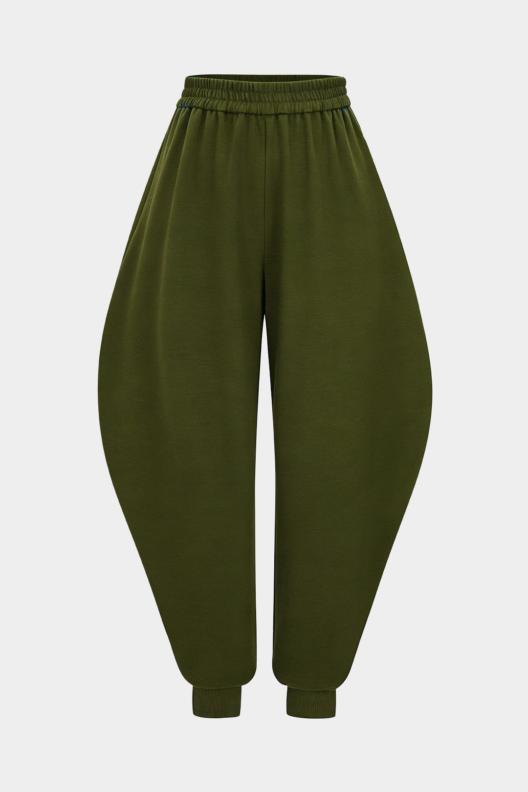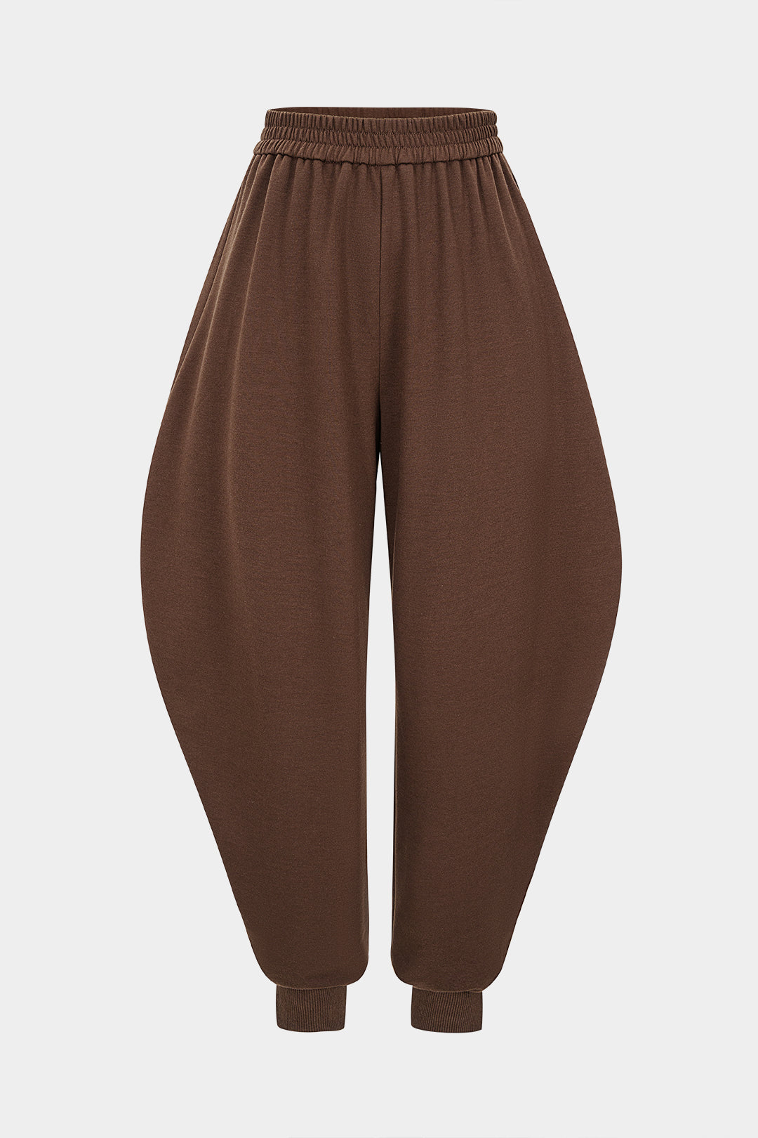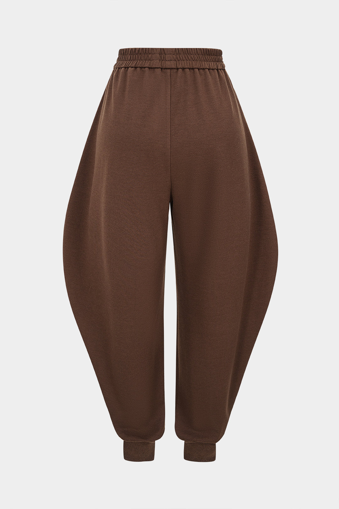 Solid Shirred Waistband High Waist Barrel Pants
