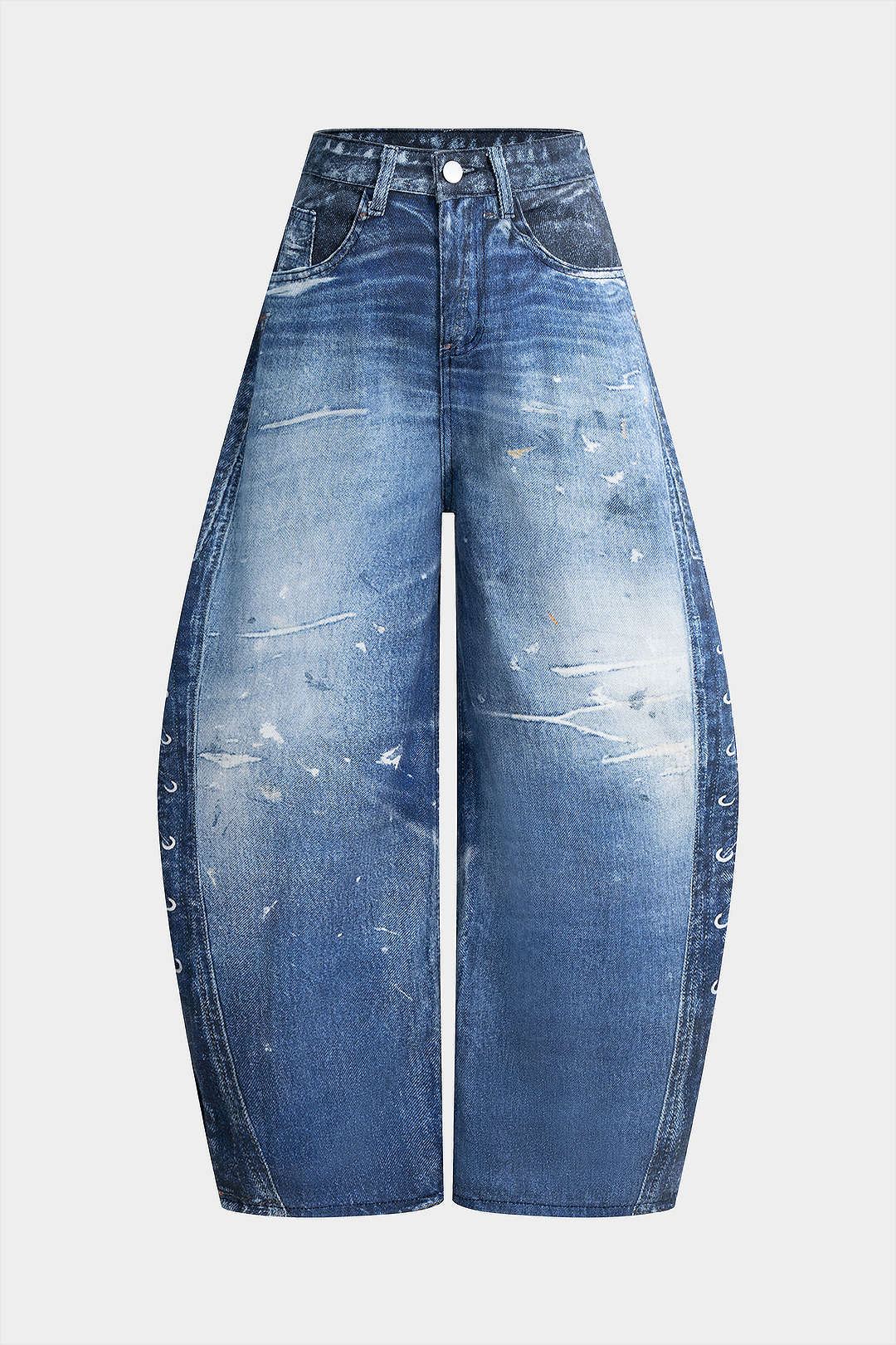 Denim Retro Print Wide Leg Jeans
