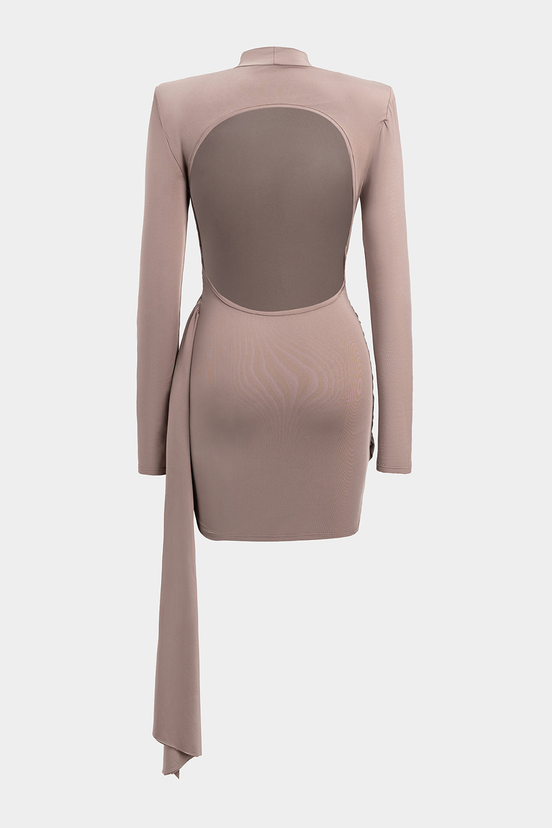 Mock Neck Ruched Backless Long Sleeve Mini Dress