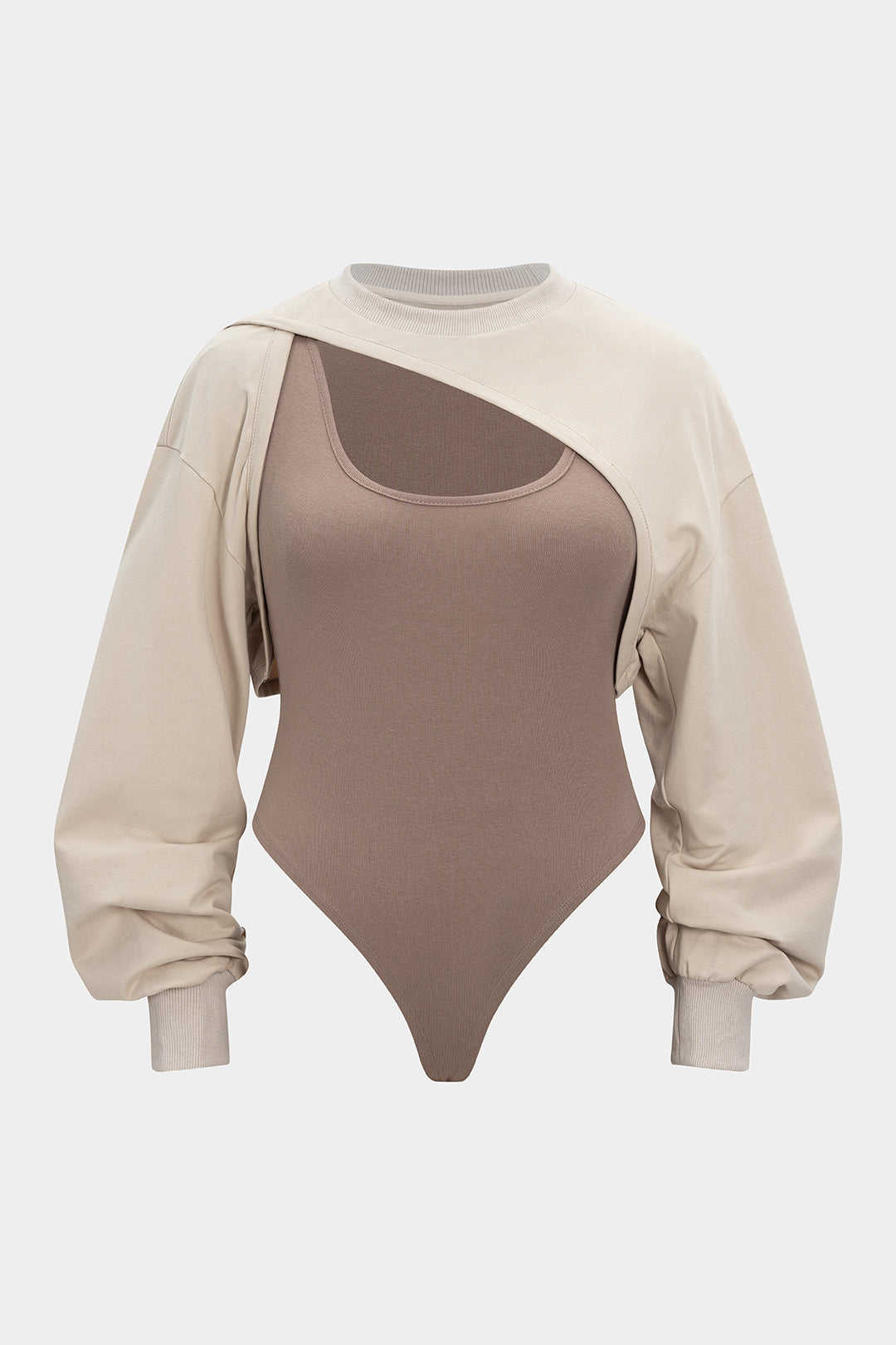 Plus Size Asymmetrical Cut Out Long Sleeve Bodysuit