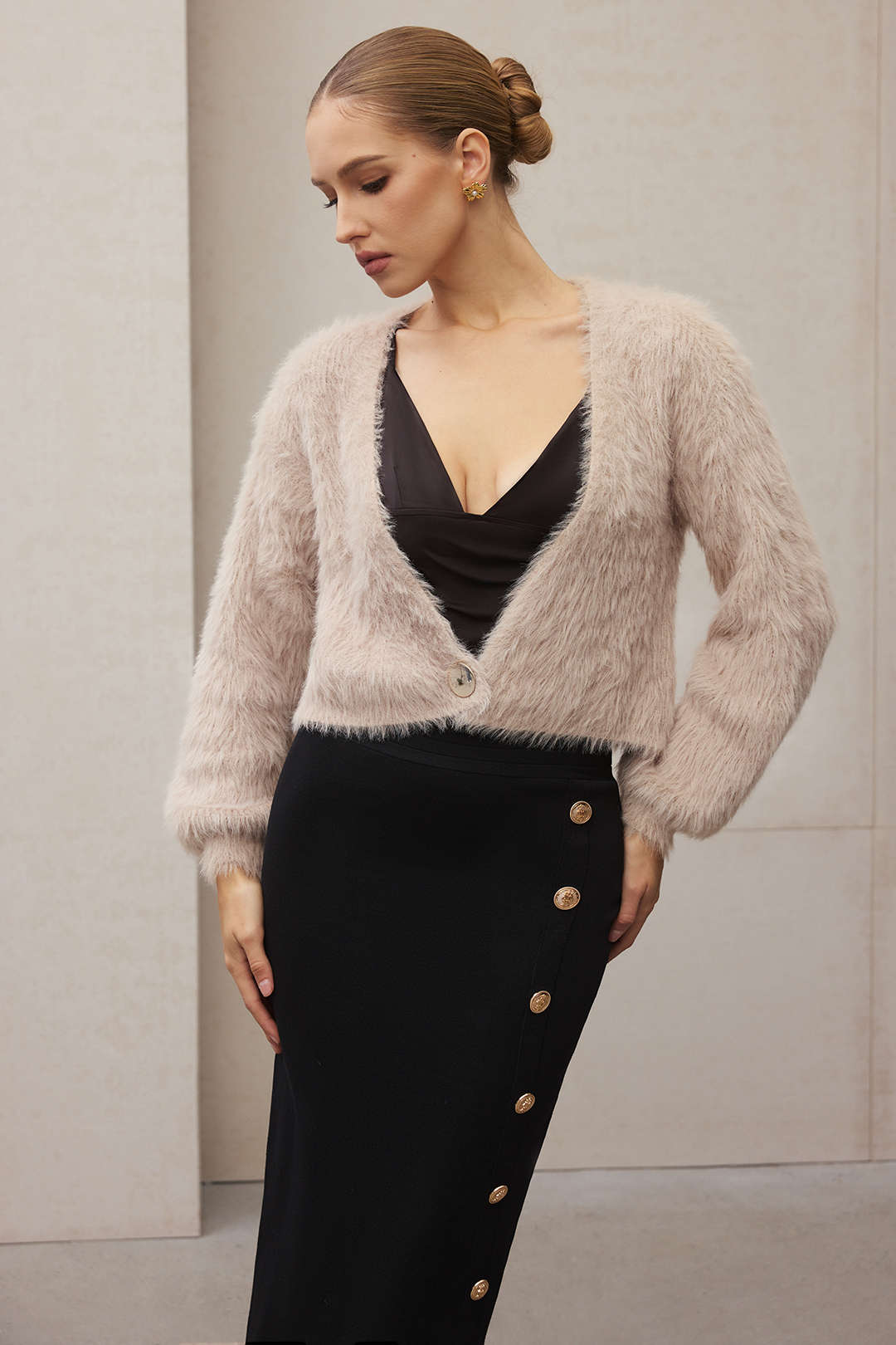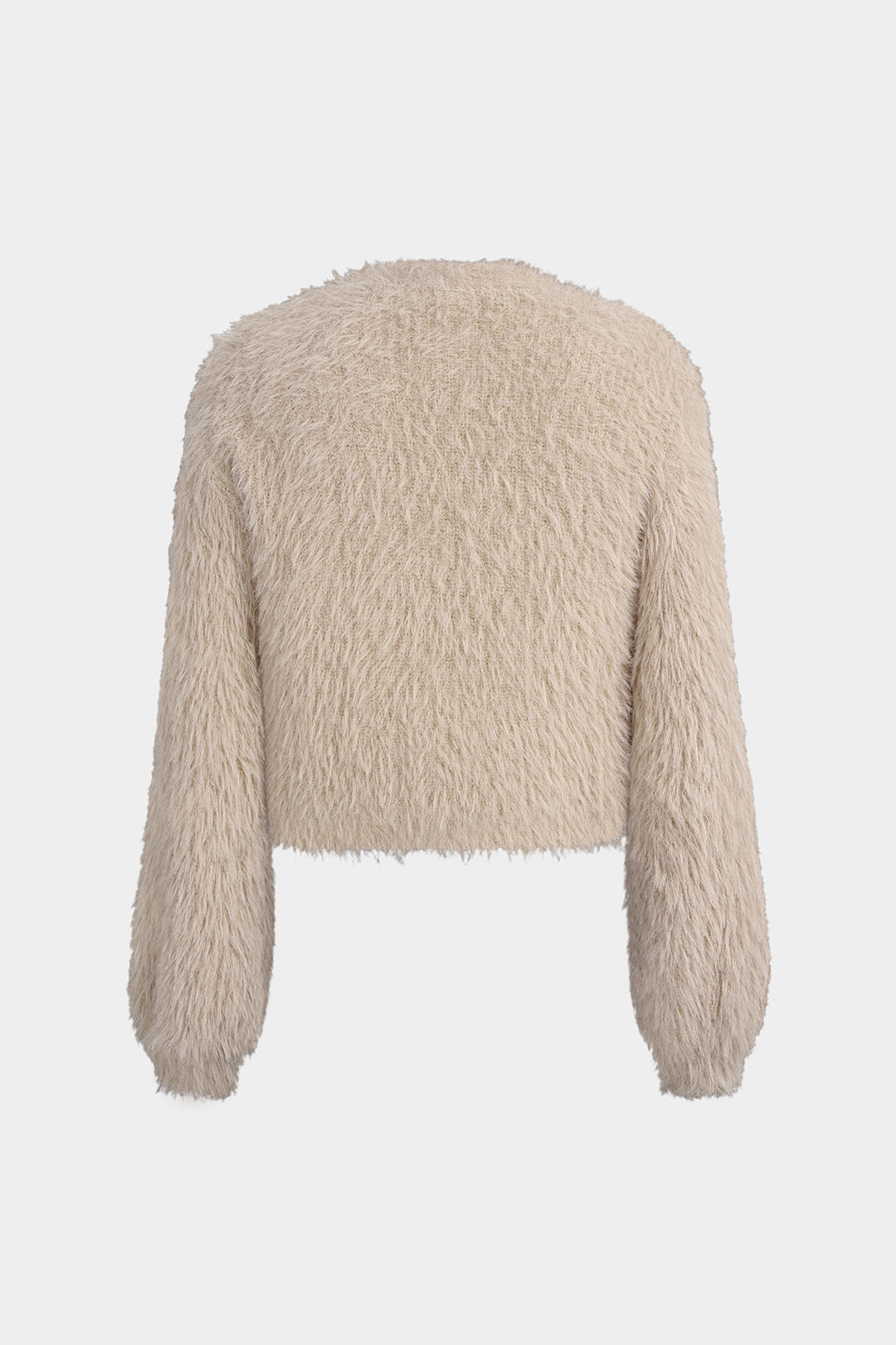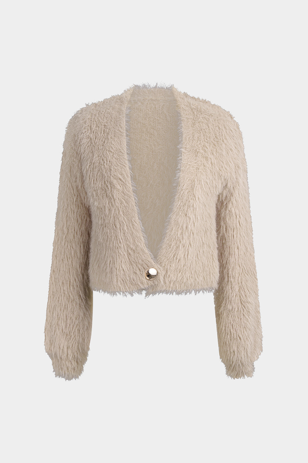 Plush Knit V-Neck One Button Long-Sleeve Top