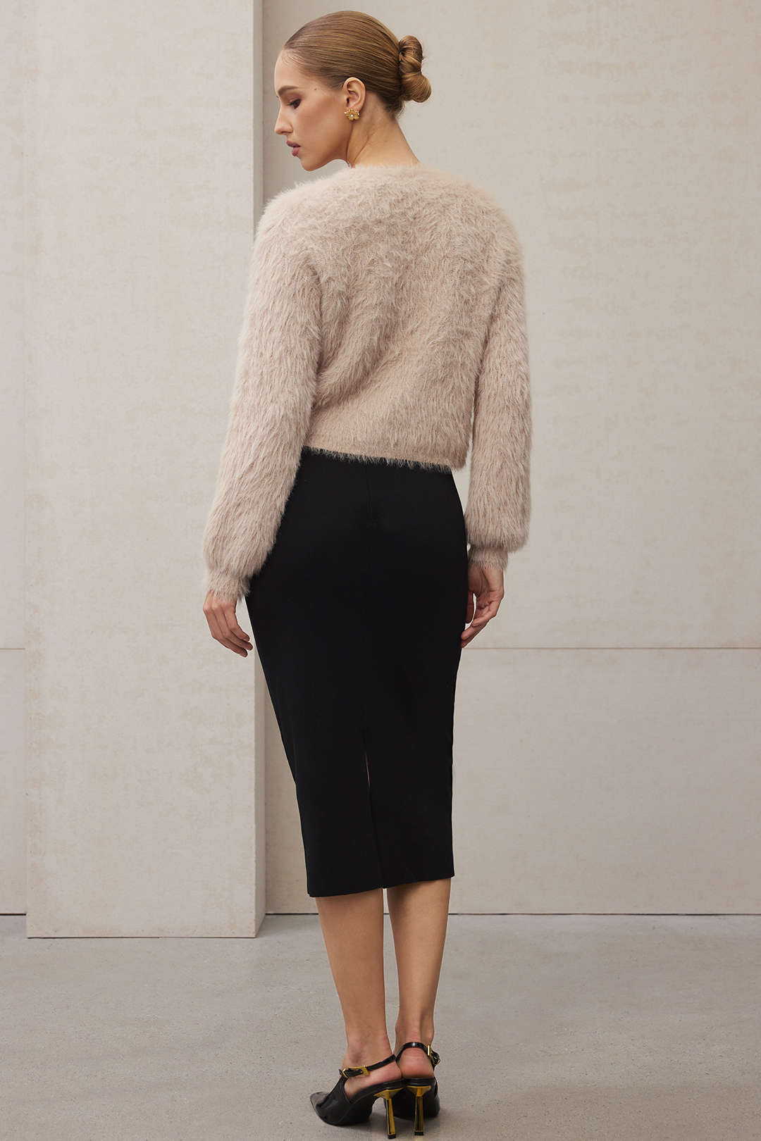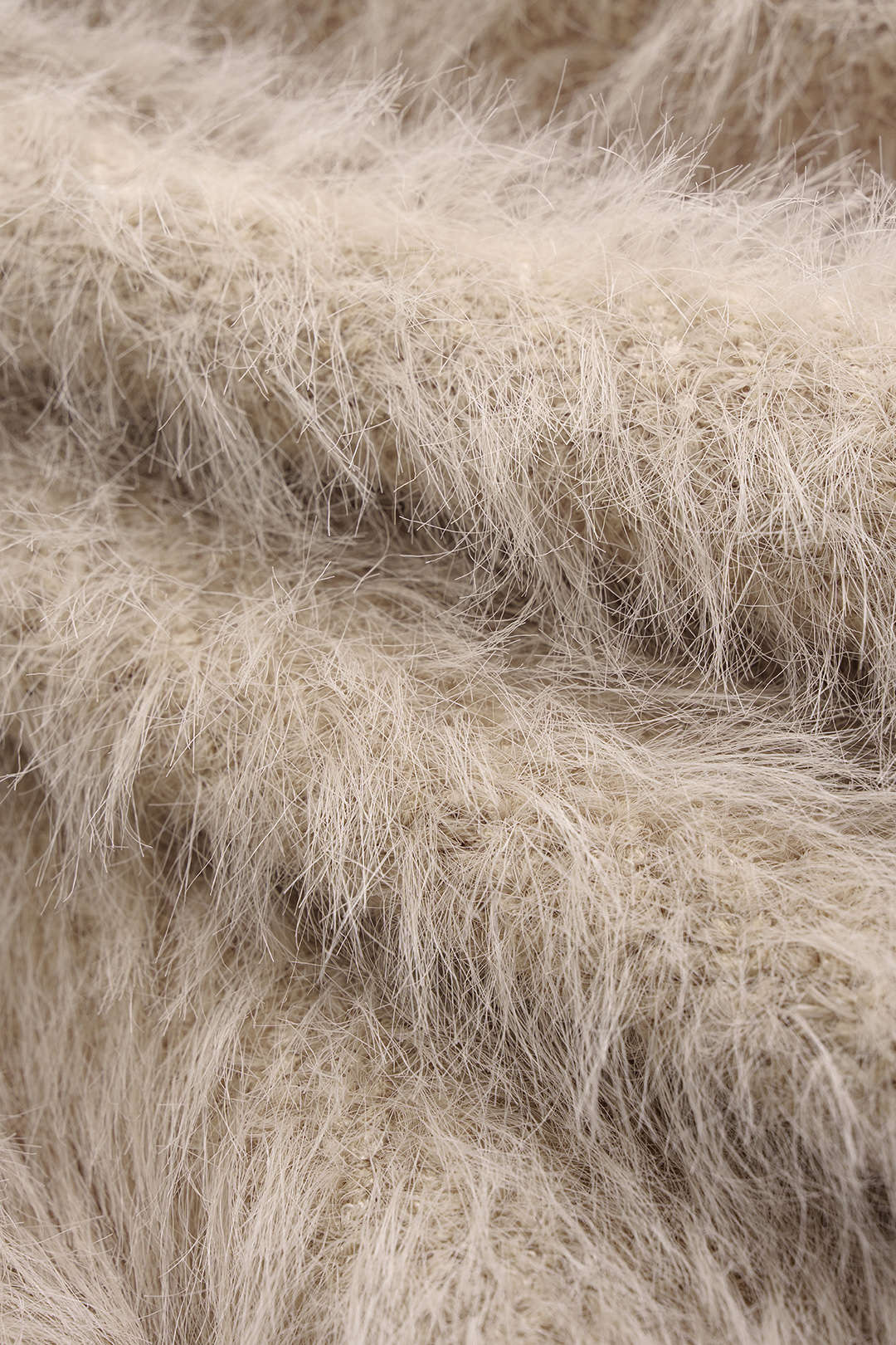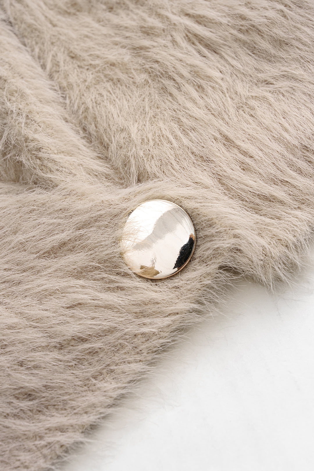 Plush Knit V-Neck One Button Long-Sleeve Top