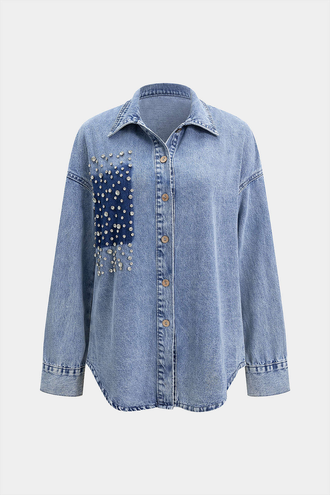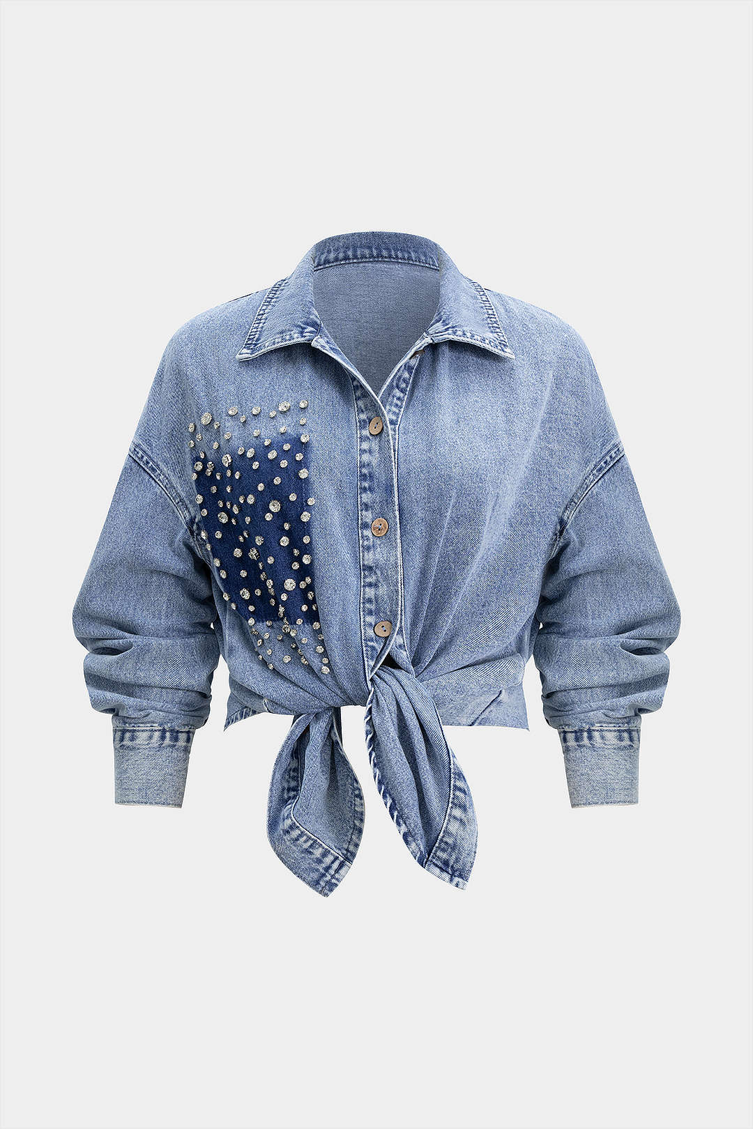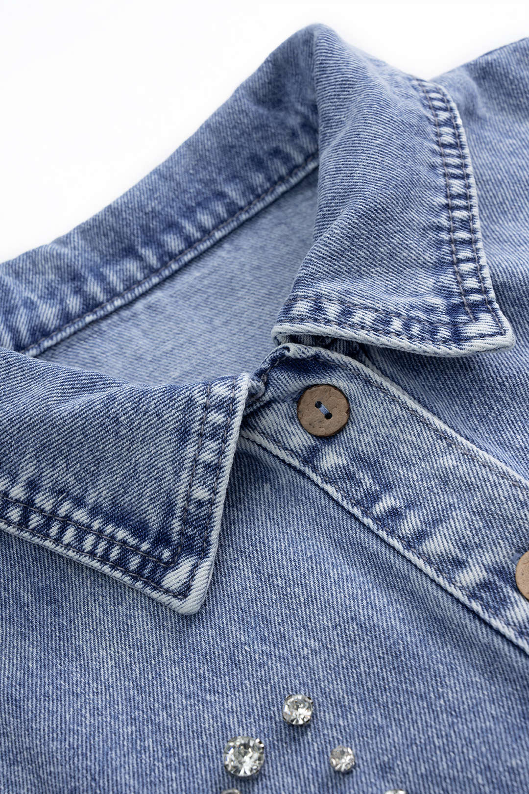 Denim Rhinestone Decor Outerwear