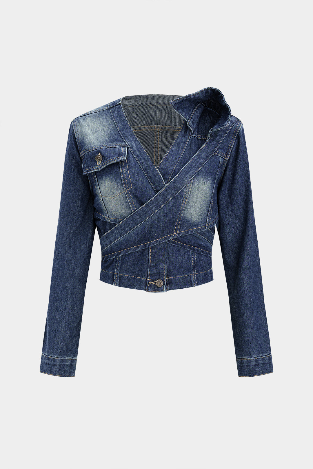 Denim Crossed Tie-Back Asymmetrical Outerwear
