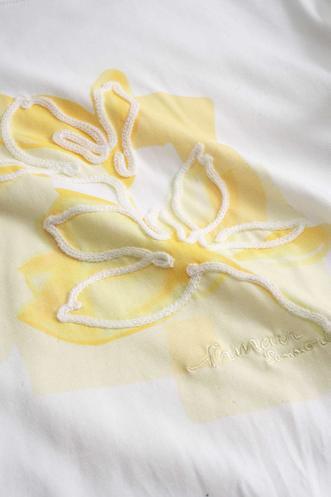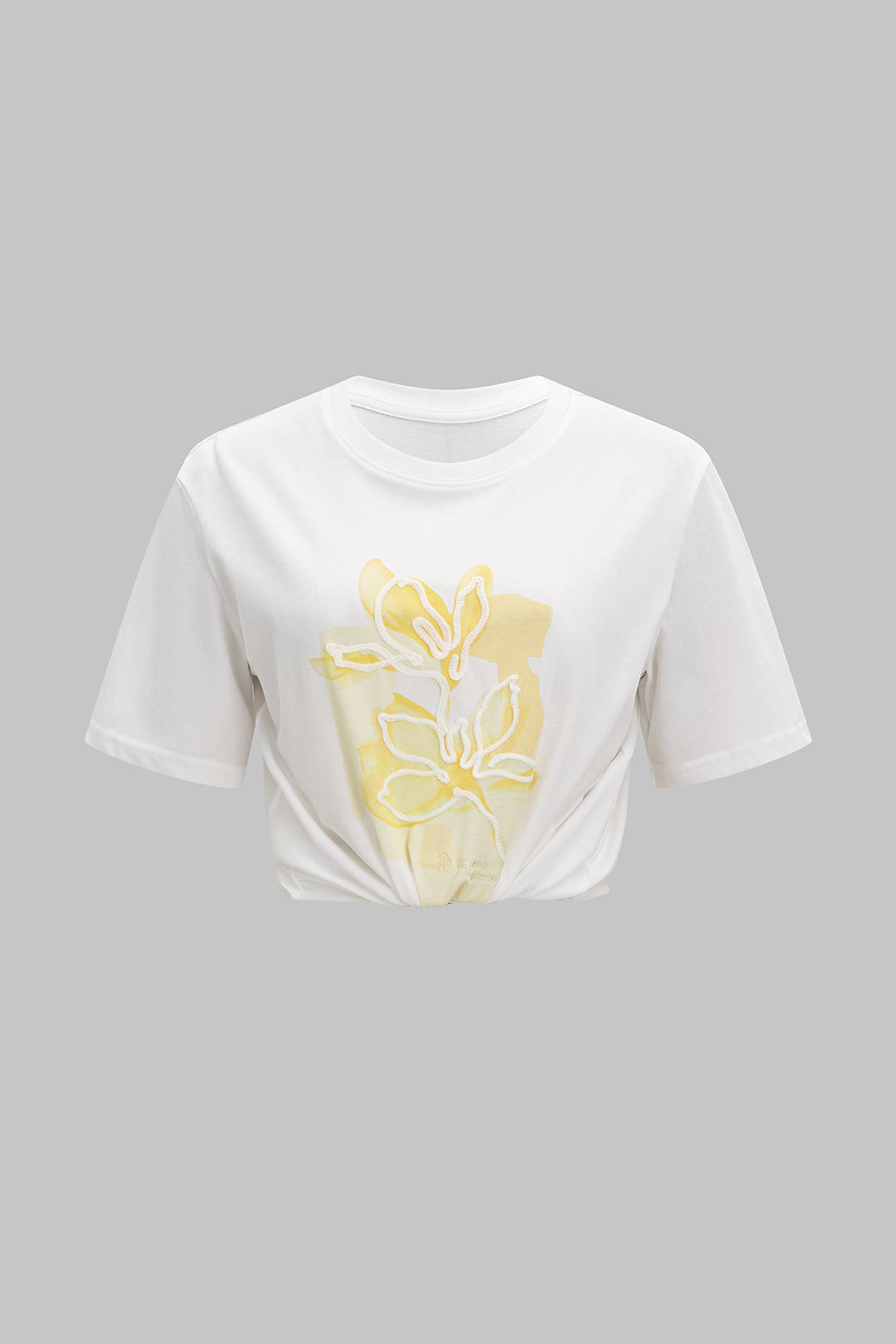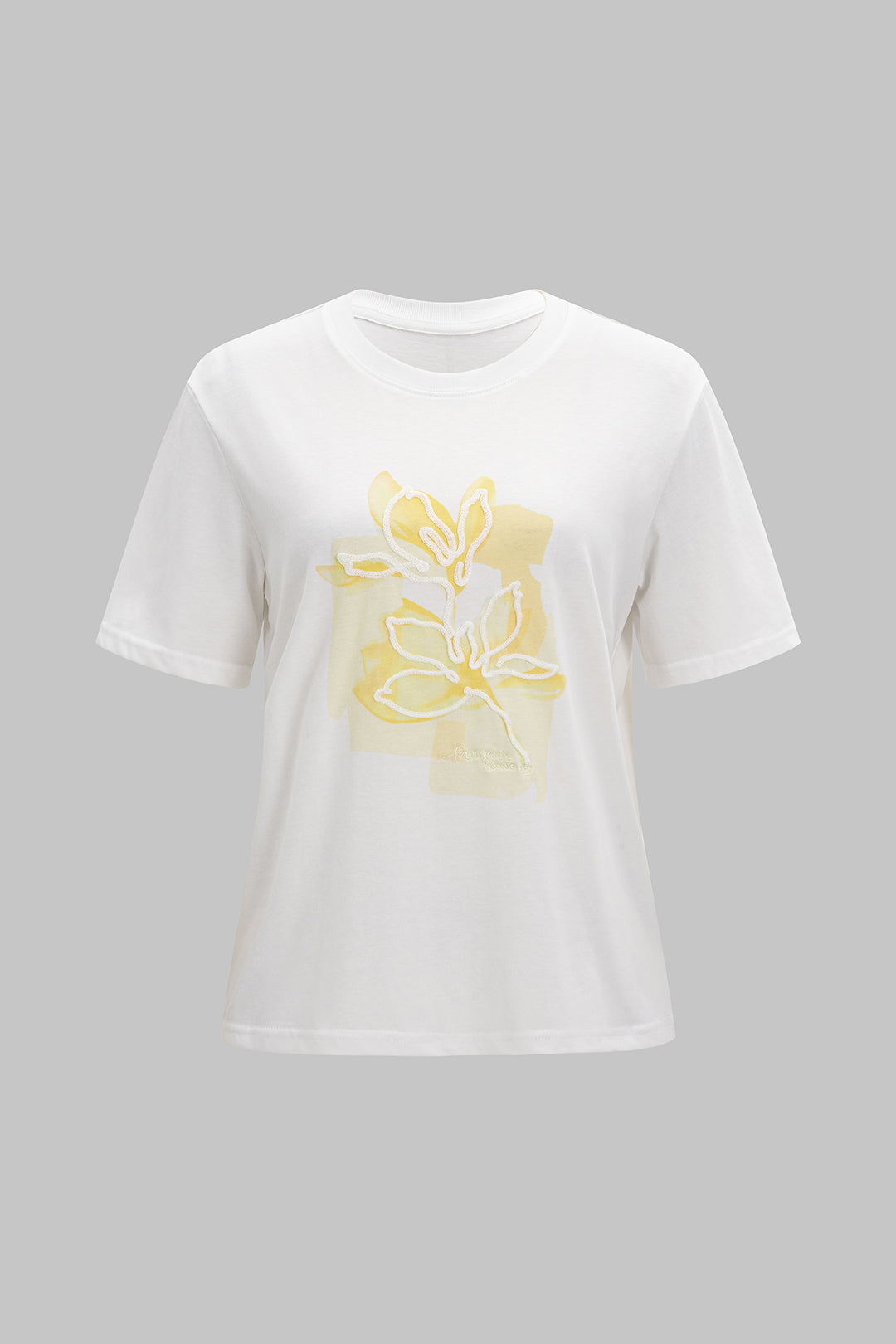 طباعة الأزهار تطريز تي شيرت قصير الأكمام