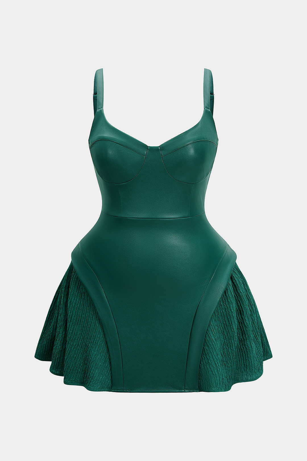 Plus Size Faux Leather Patchwork Sleeveless Mini Dress