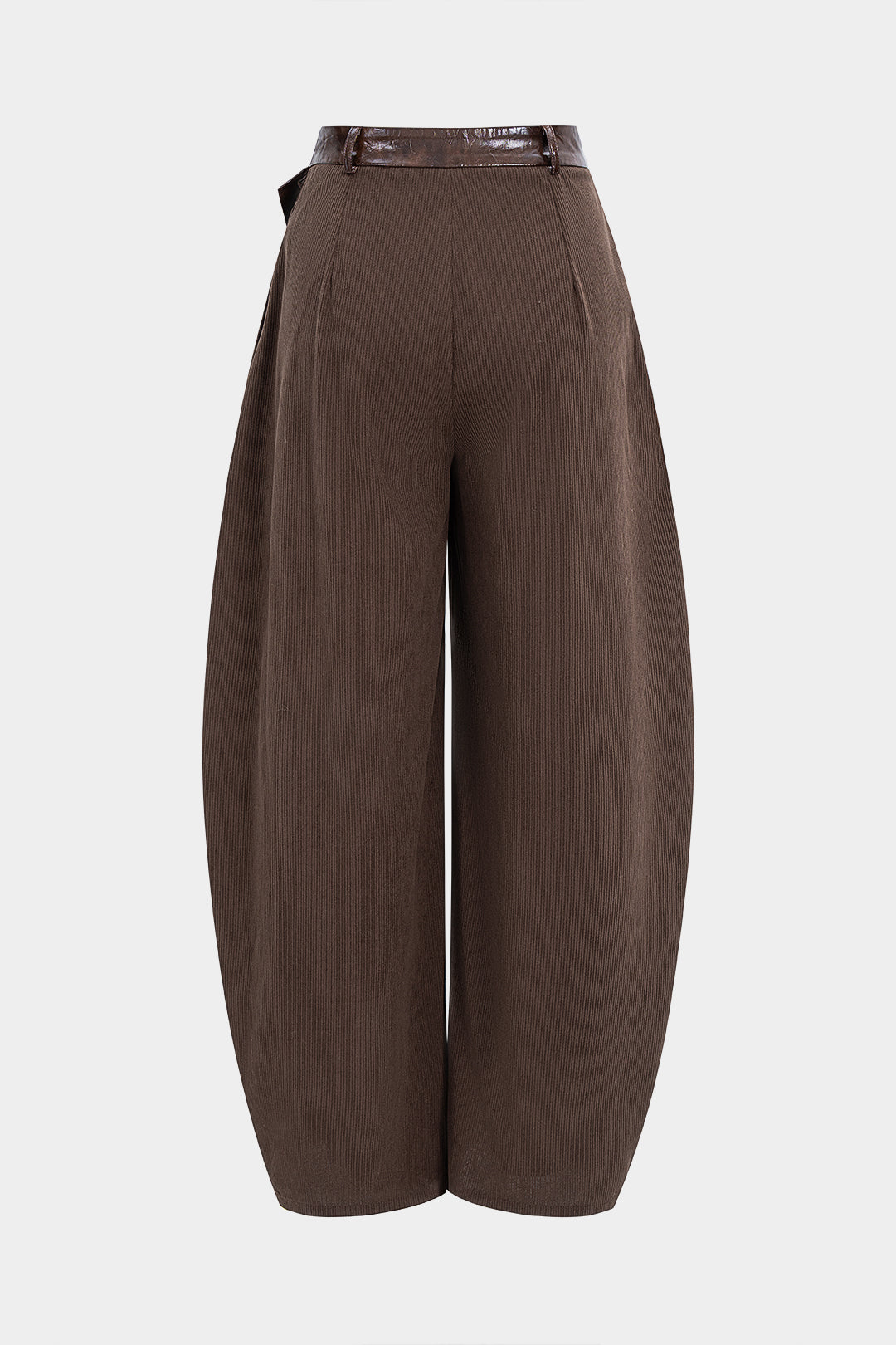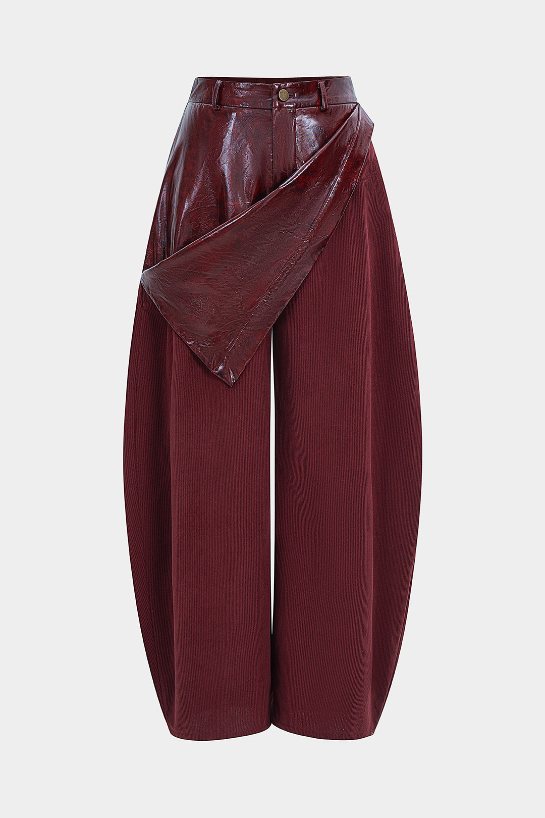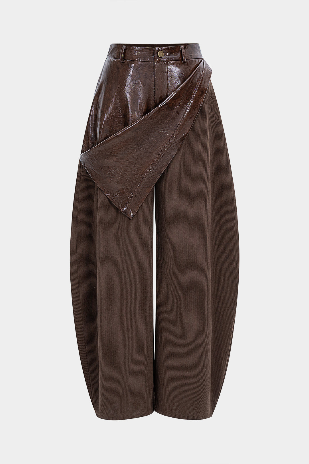 Faux Leather Patchwork Zipper Wide Leg Pocket Barrel Trousers