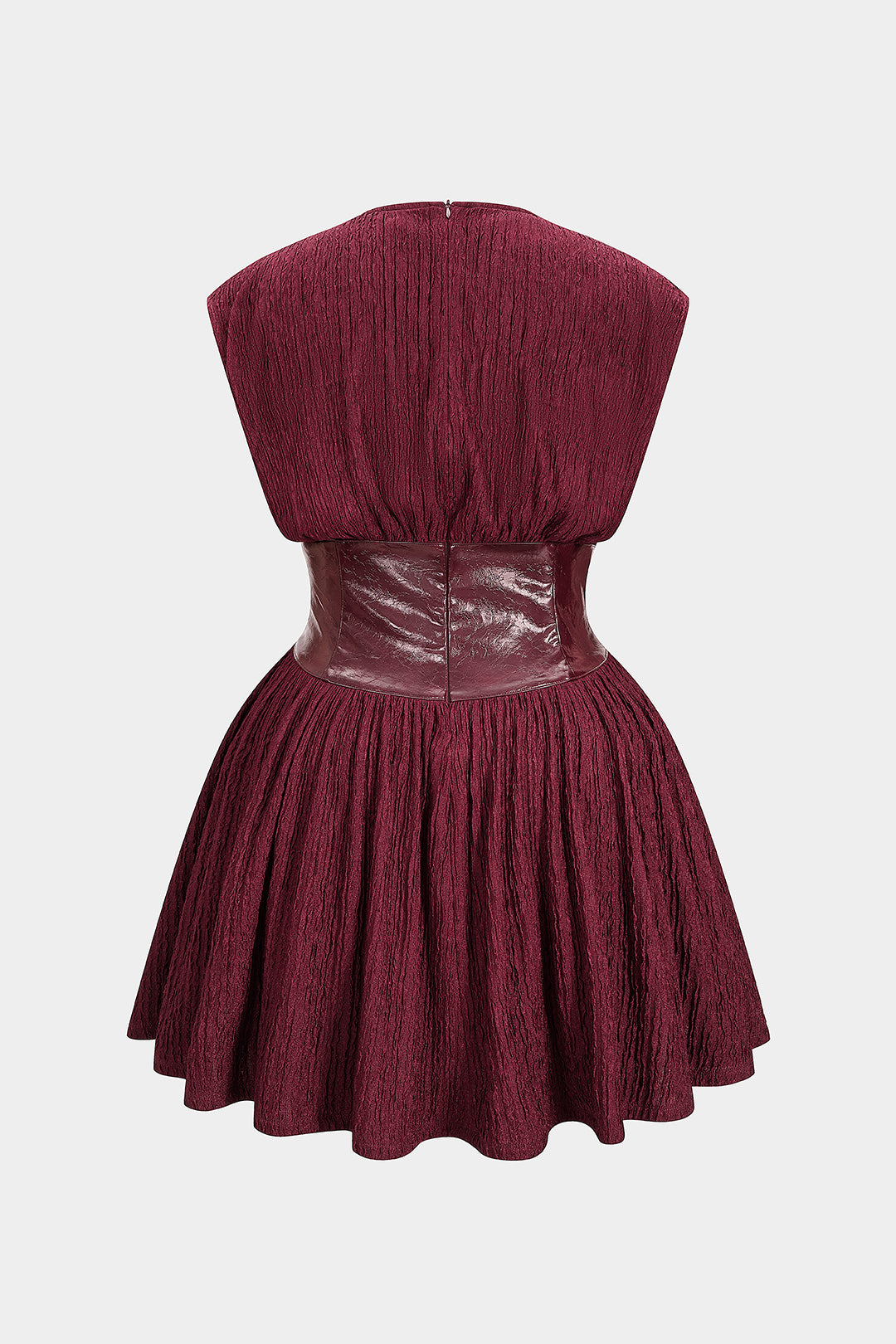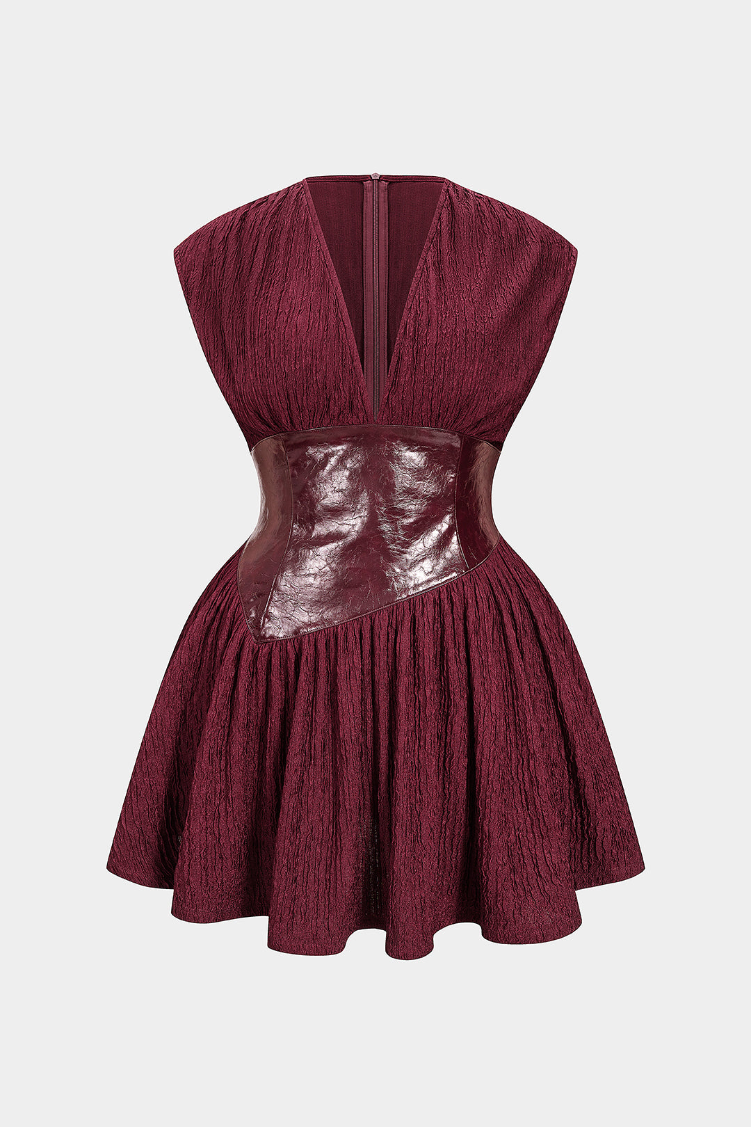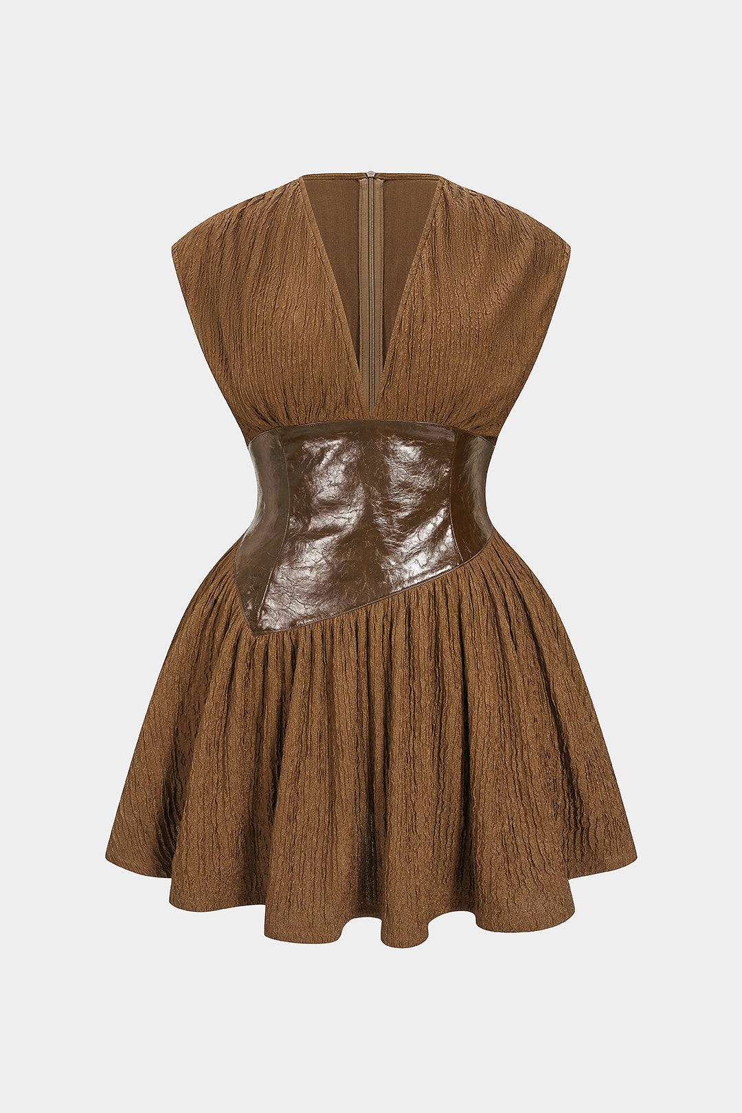 Plus Size Faux Leather Patchwork V-Neck Sleeveless Mini Dress