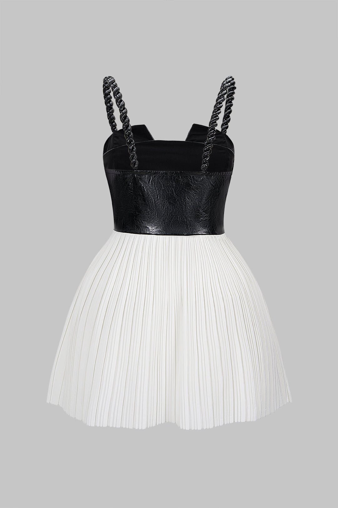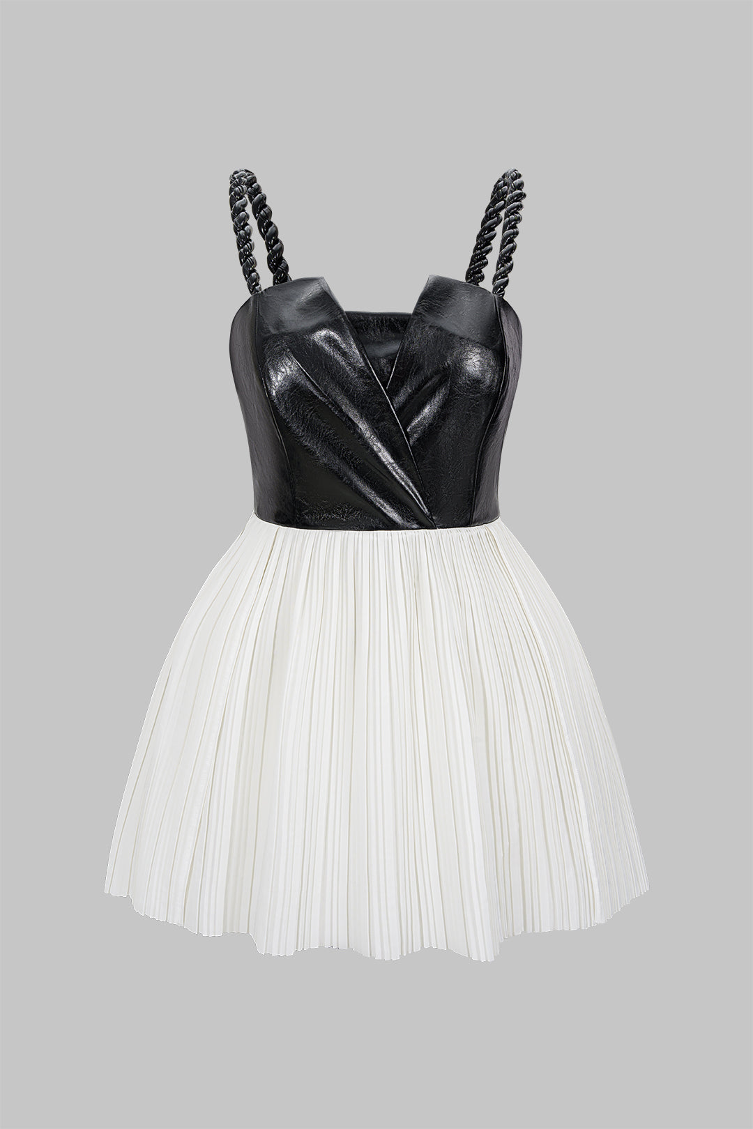 Plus Size Faux Leather Patchwork Twist Knot Slip Pleated Sleeveless Mini Dress