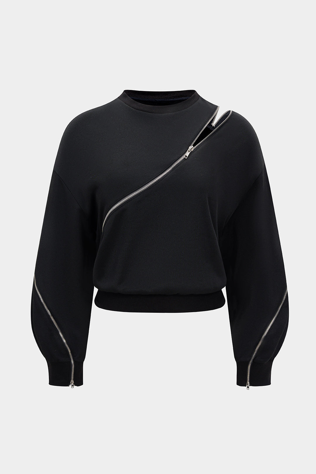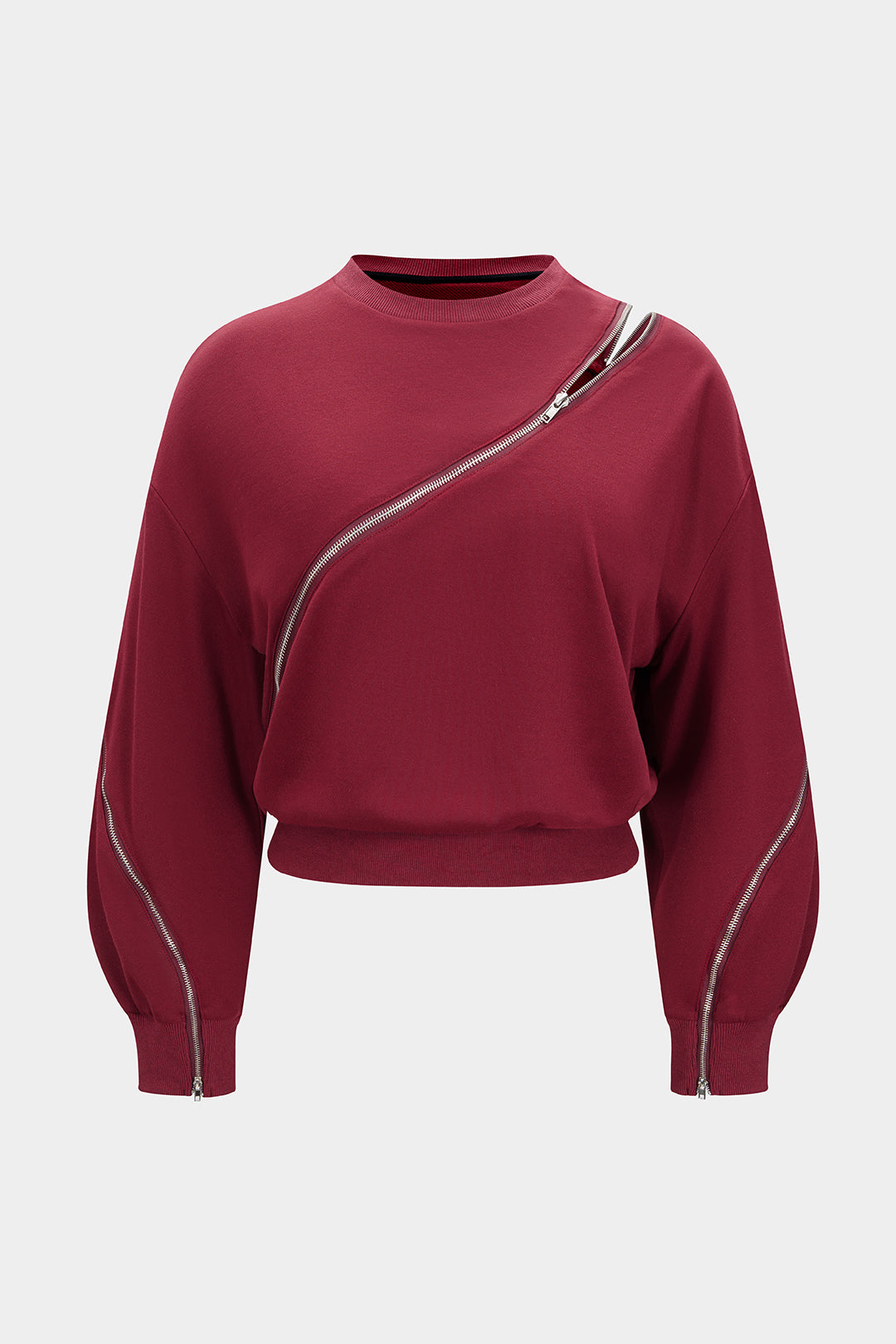 Plus Size Zipper Detail Long Sleeve Sweatshirt
