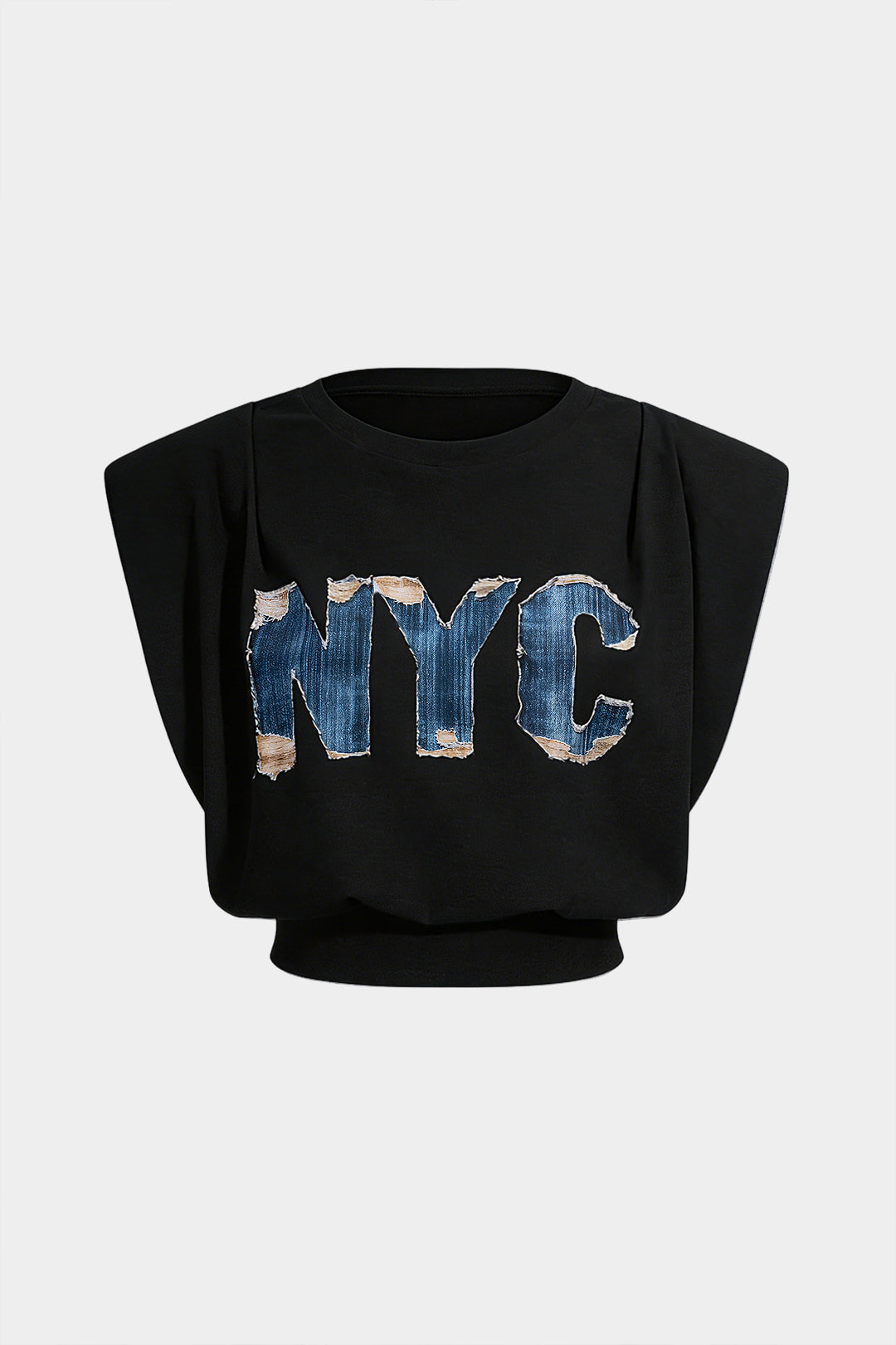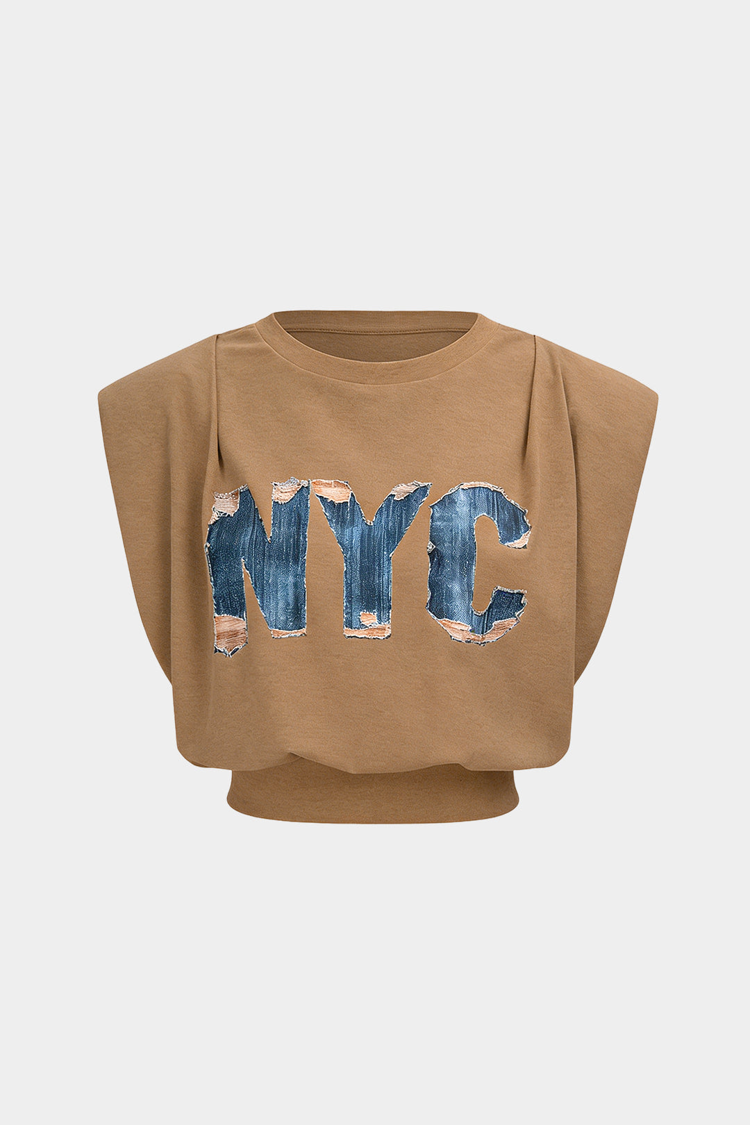 Letter Print Ruched Sleeveless T-Shirt