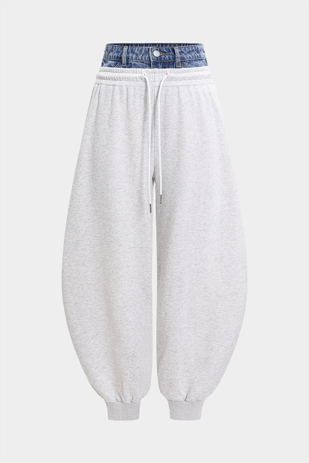Drawstring Patchwork Denim Barrel Pants