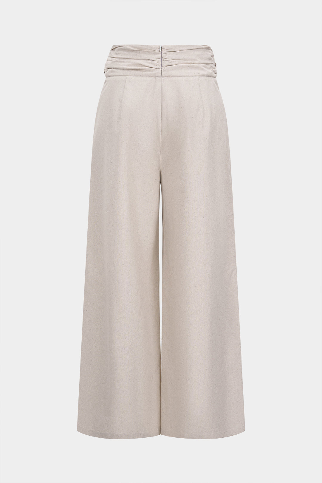 Ruched Zipper Linen Wide Leg Twist Knot Pant