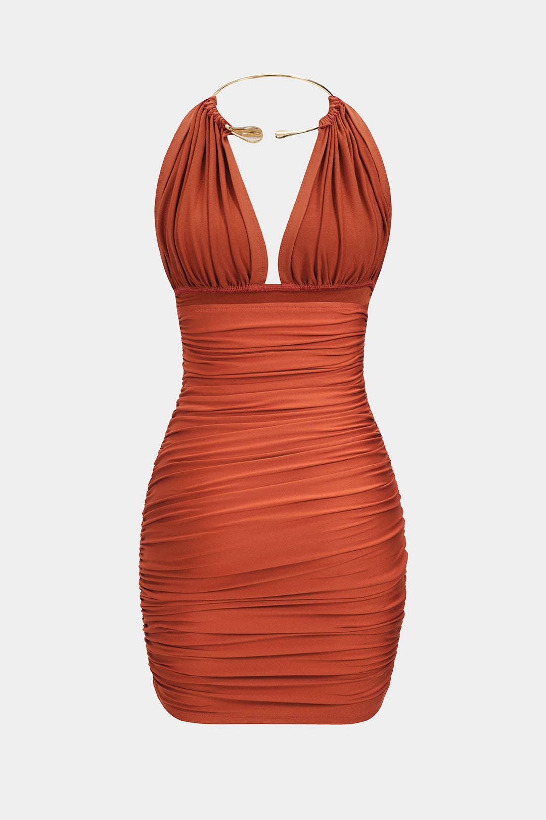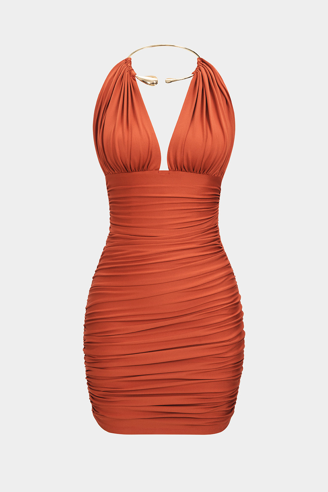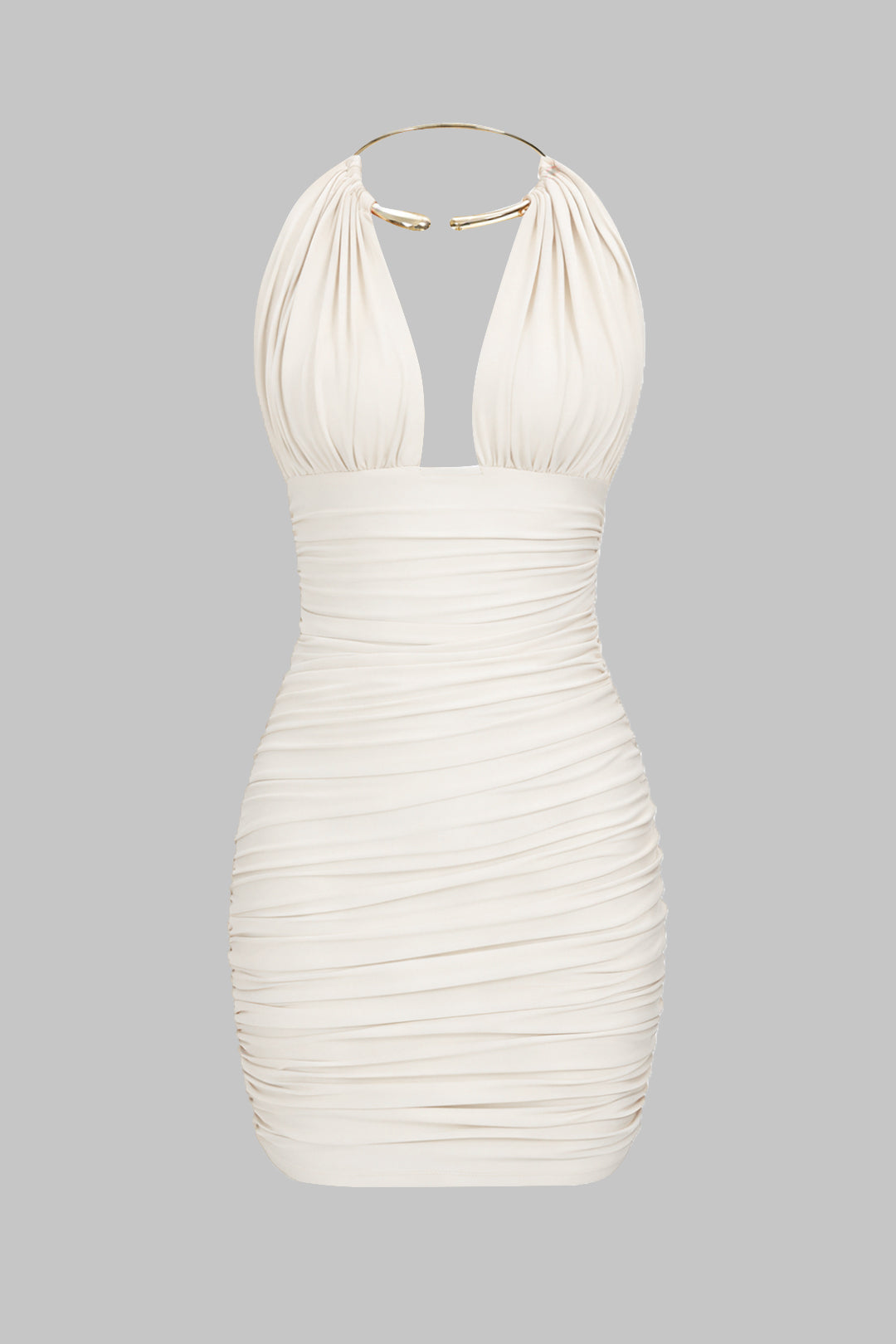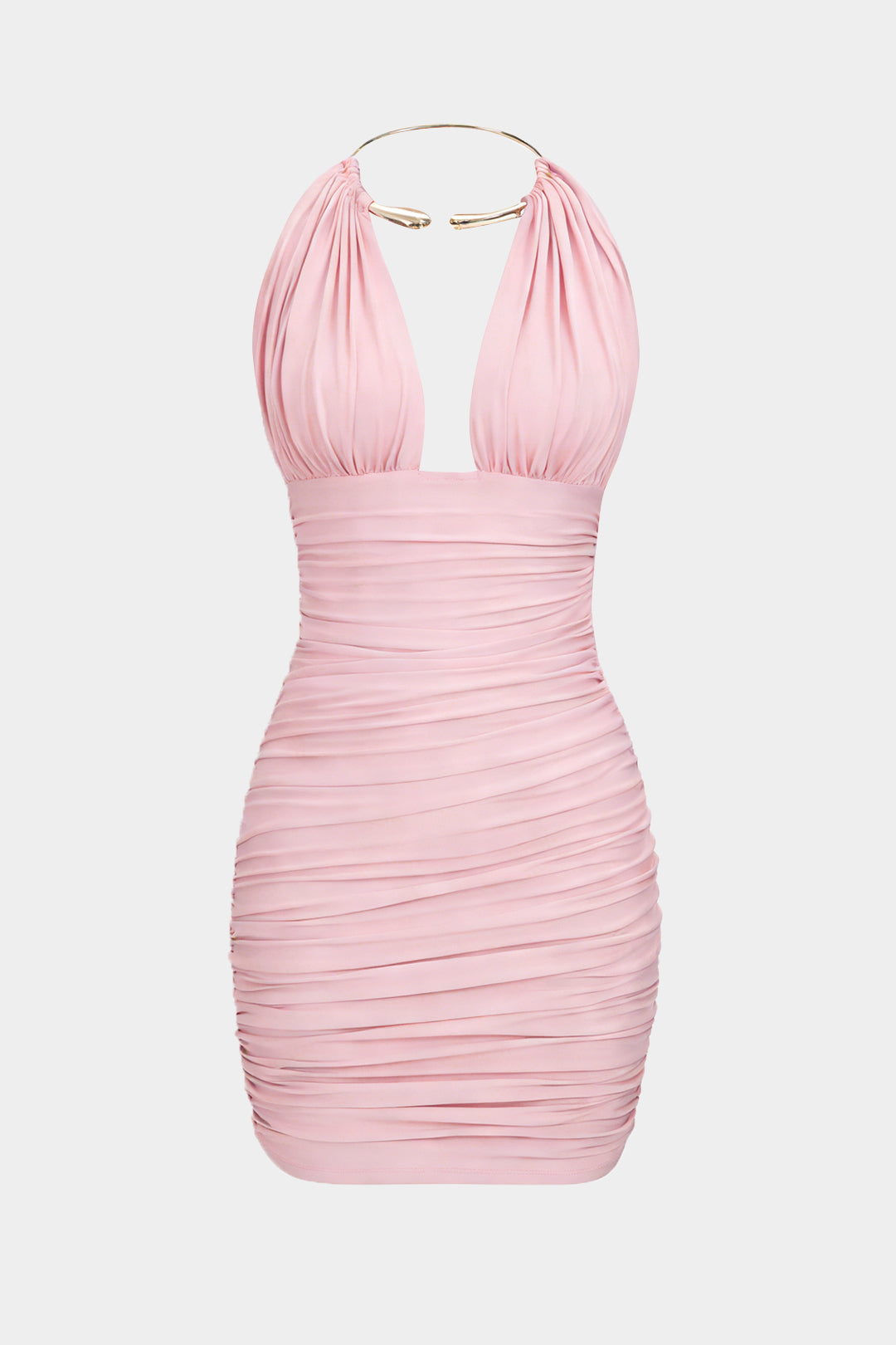 Metallic Halter Backless Ruched Sleeveless Mini Dress