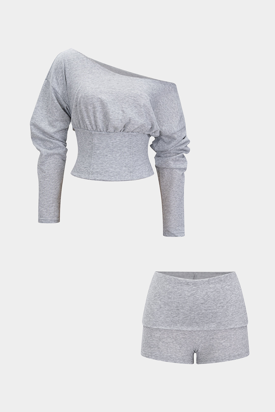 One-Shoulder Tie-Back Long-Sleeve Top And Shorts Set