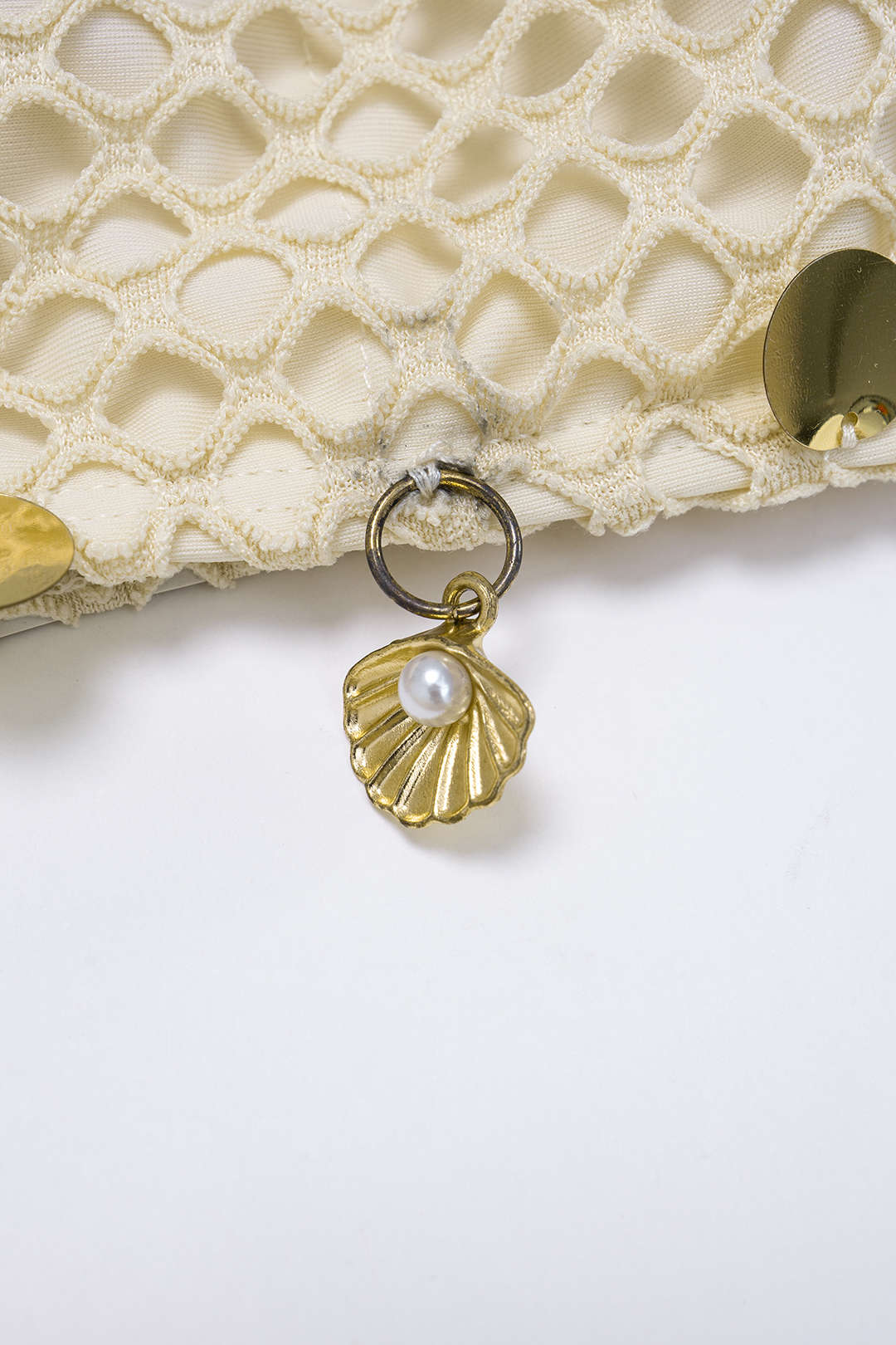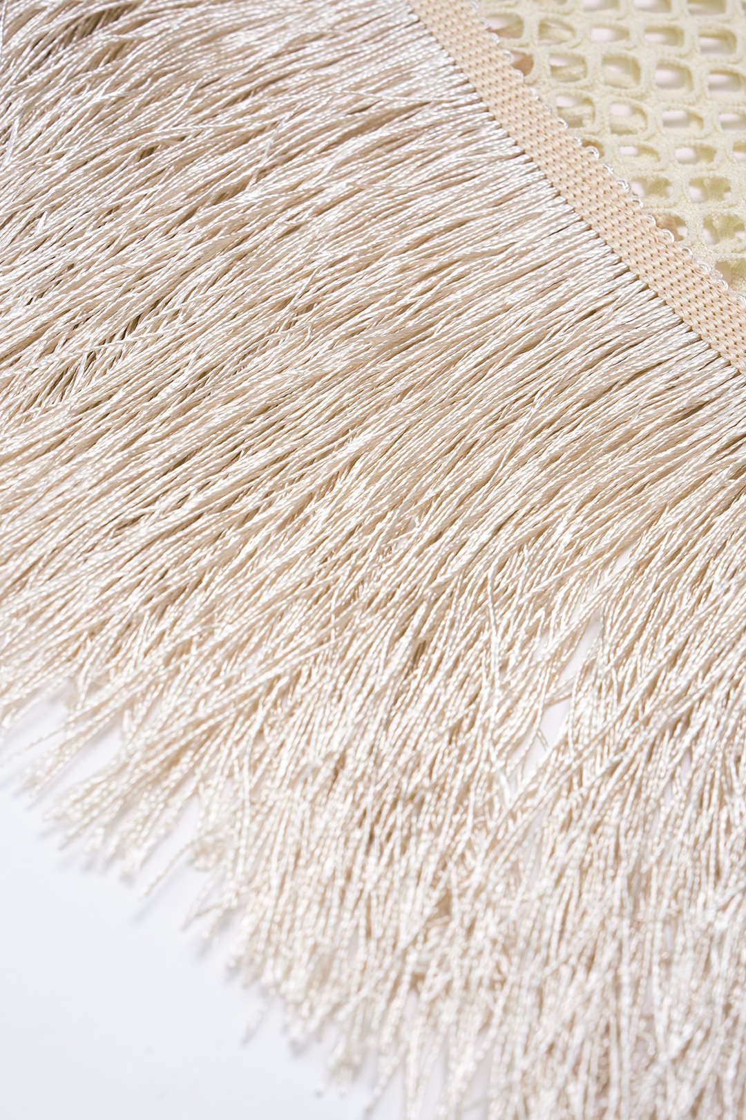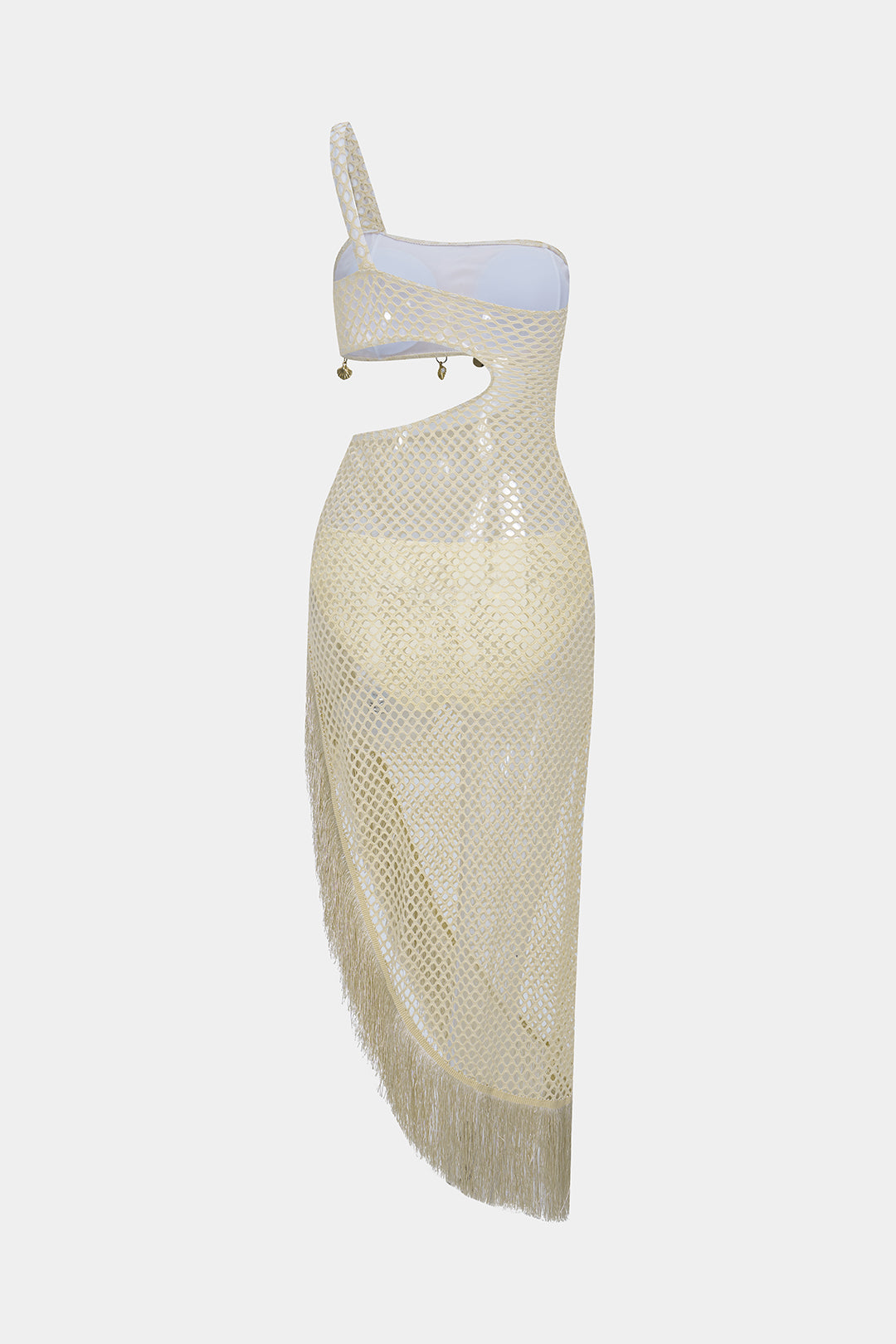 Cut Out Mesh Patchwork Fringe One Shoulder Bikini Set