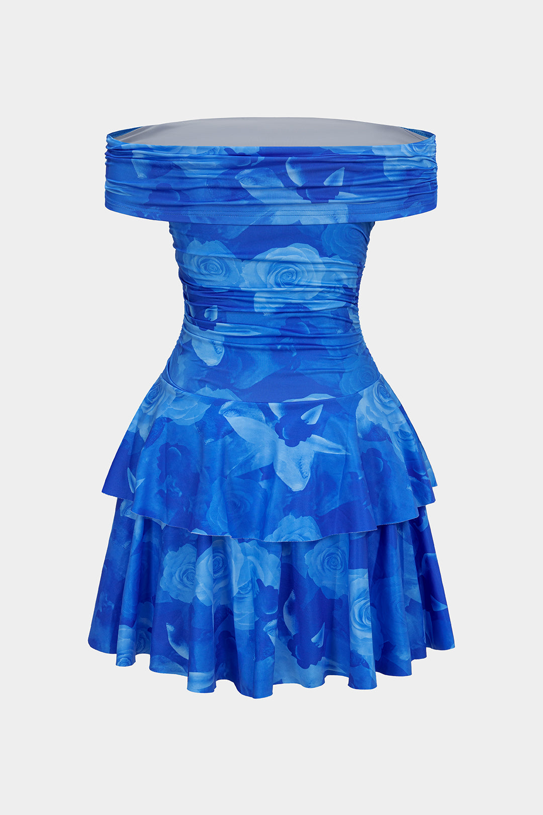 Floral Print Off Shoulder Sleeveless Mini Dress