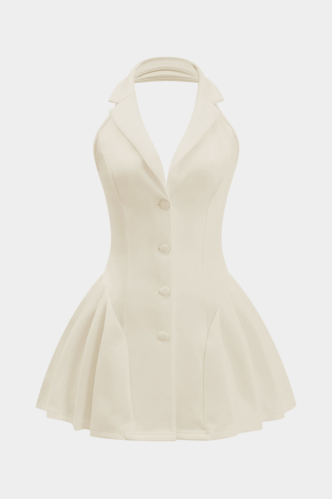 Halter Neck Button Ruffle Sleeveless Mini Dress