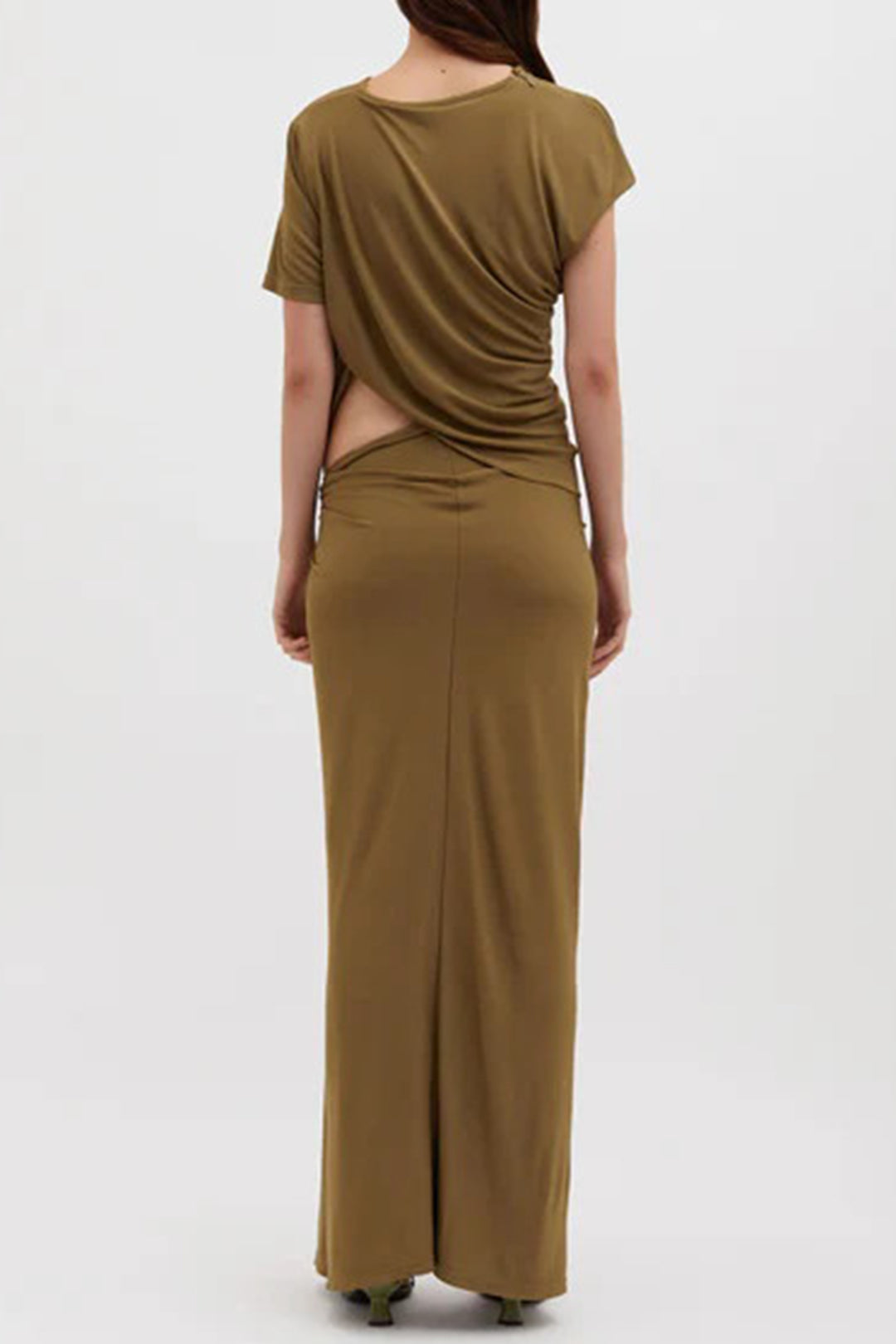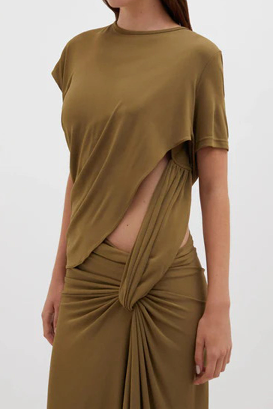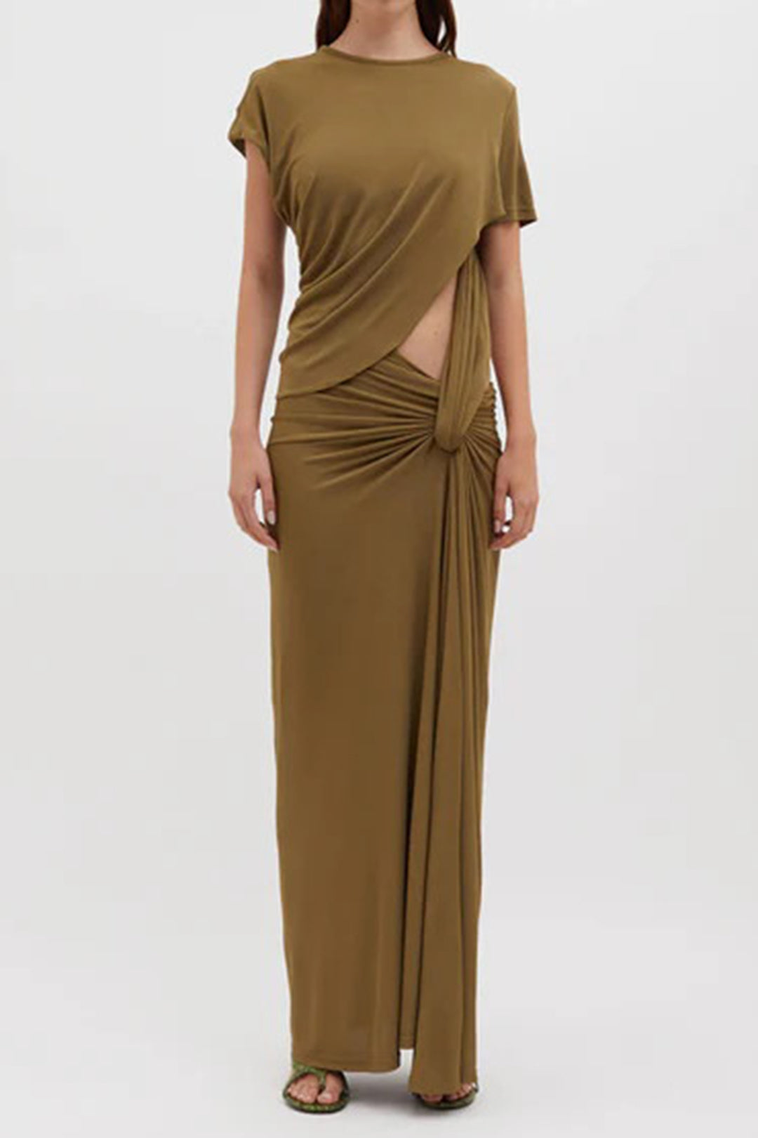 Asymmetrical Twist Knot Short Sleeve Maxi Dress