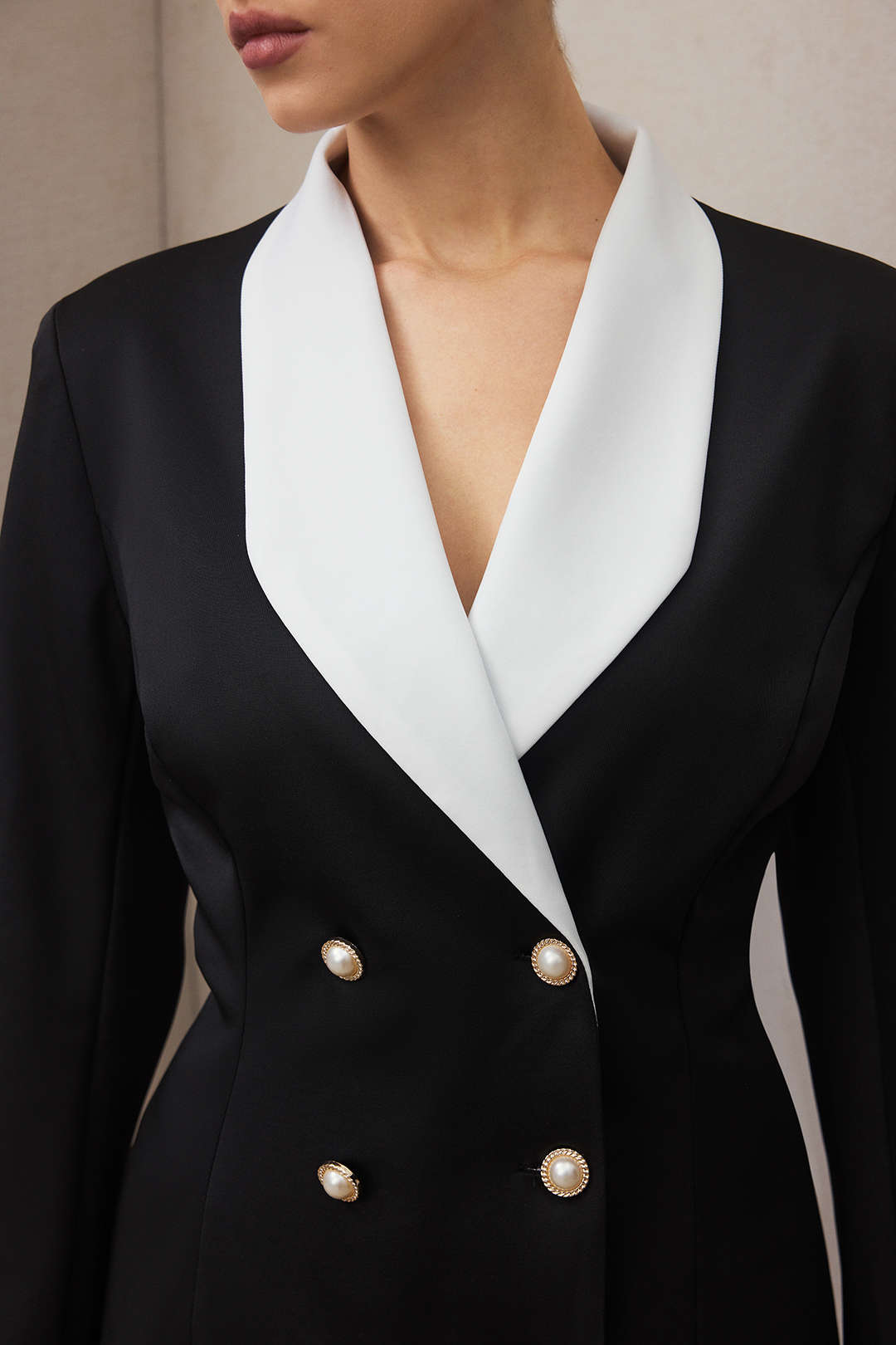 Double-Breasted Patchwork Long Sleeve Mini Dress