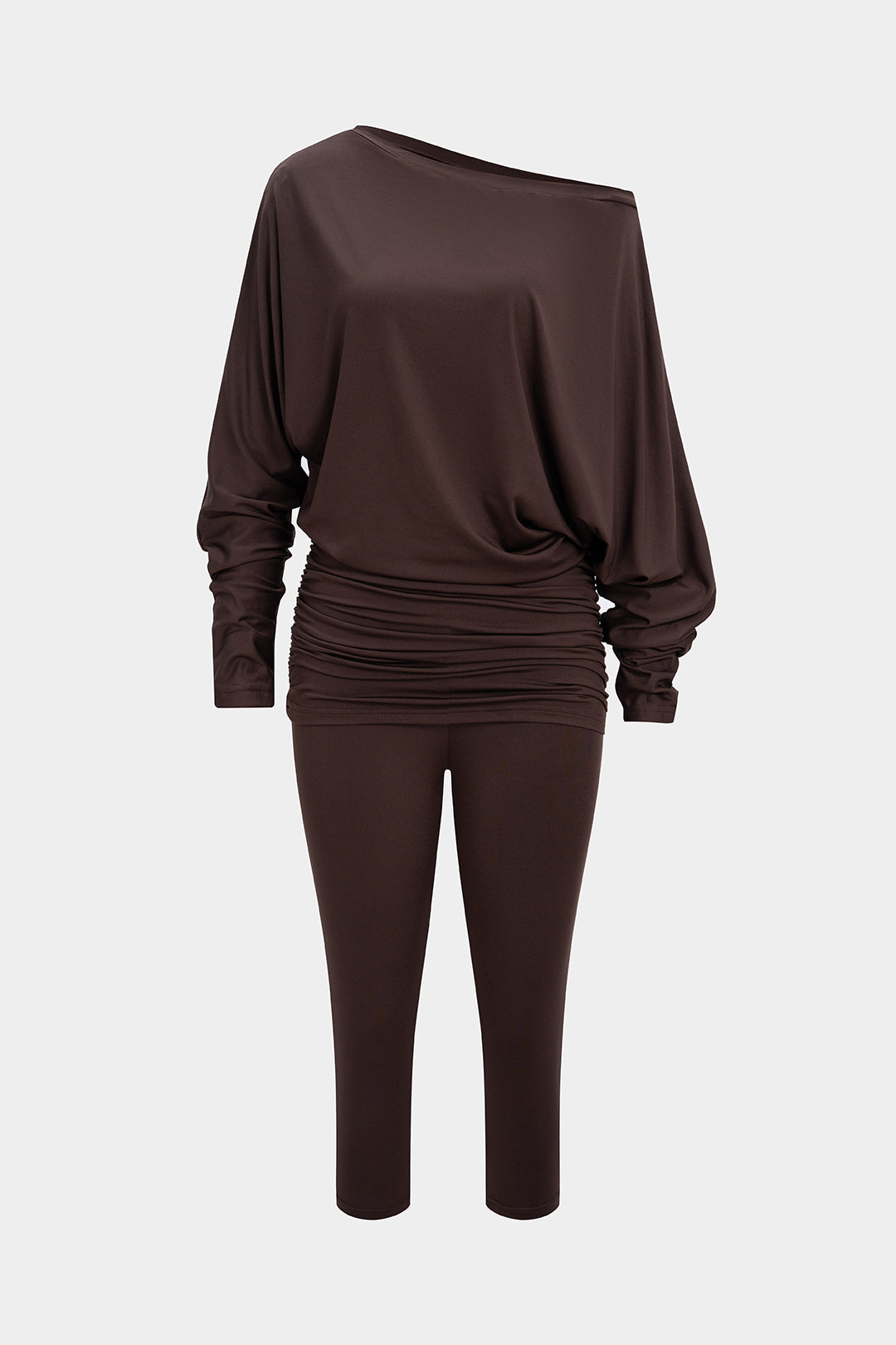 One Shoulder Ruched Asymmetrical Long Sleeve Top And Cropped Pants Set