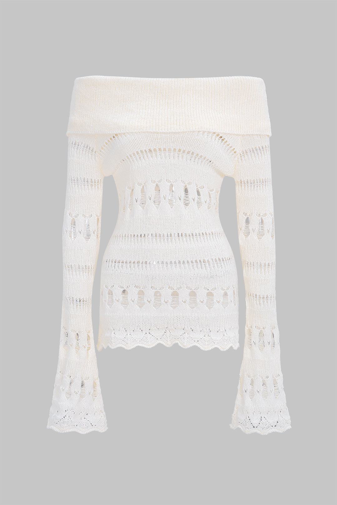 Knit Off Shoulder Cut Out Long-Sleeve Top