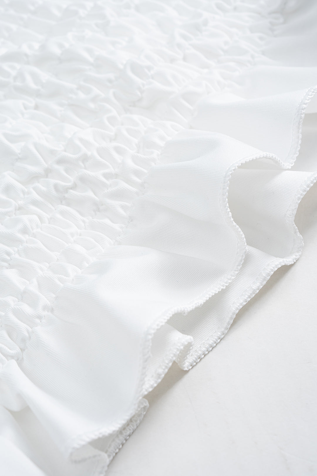Scallop Edge Round Neck Smocked Short Sleeve T-Shirt
