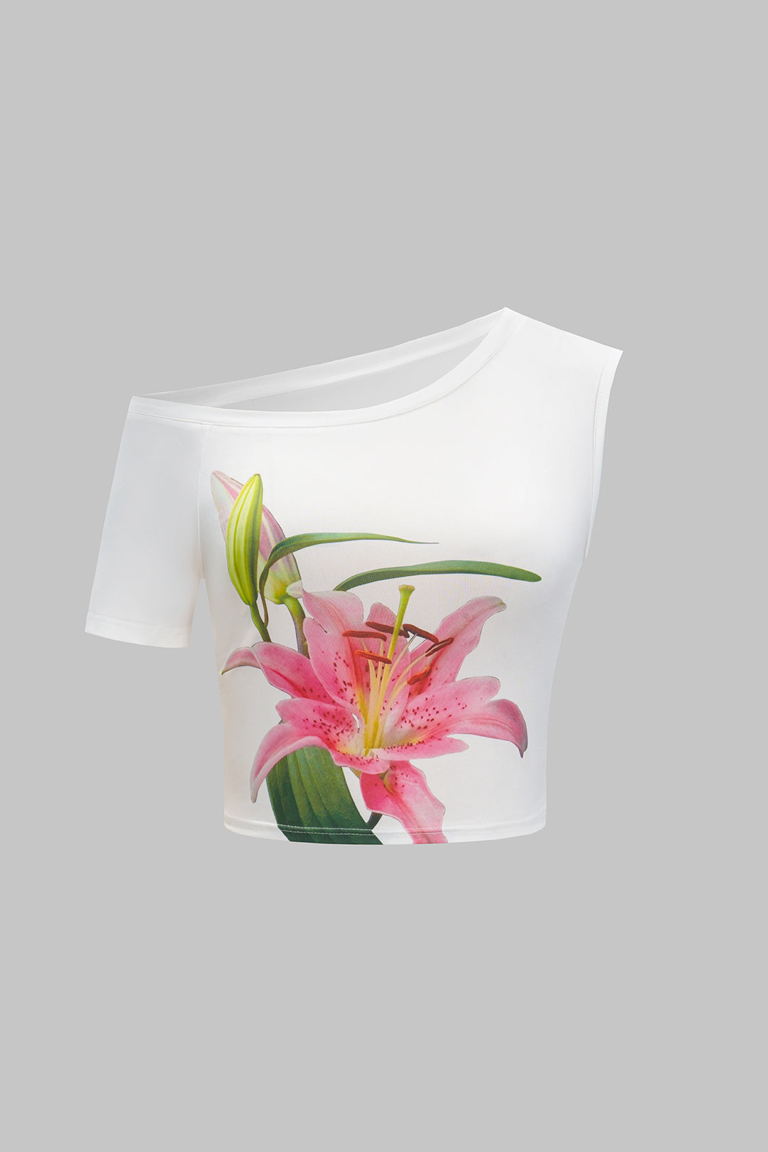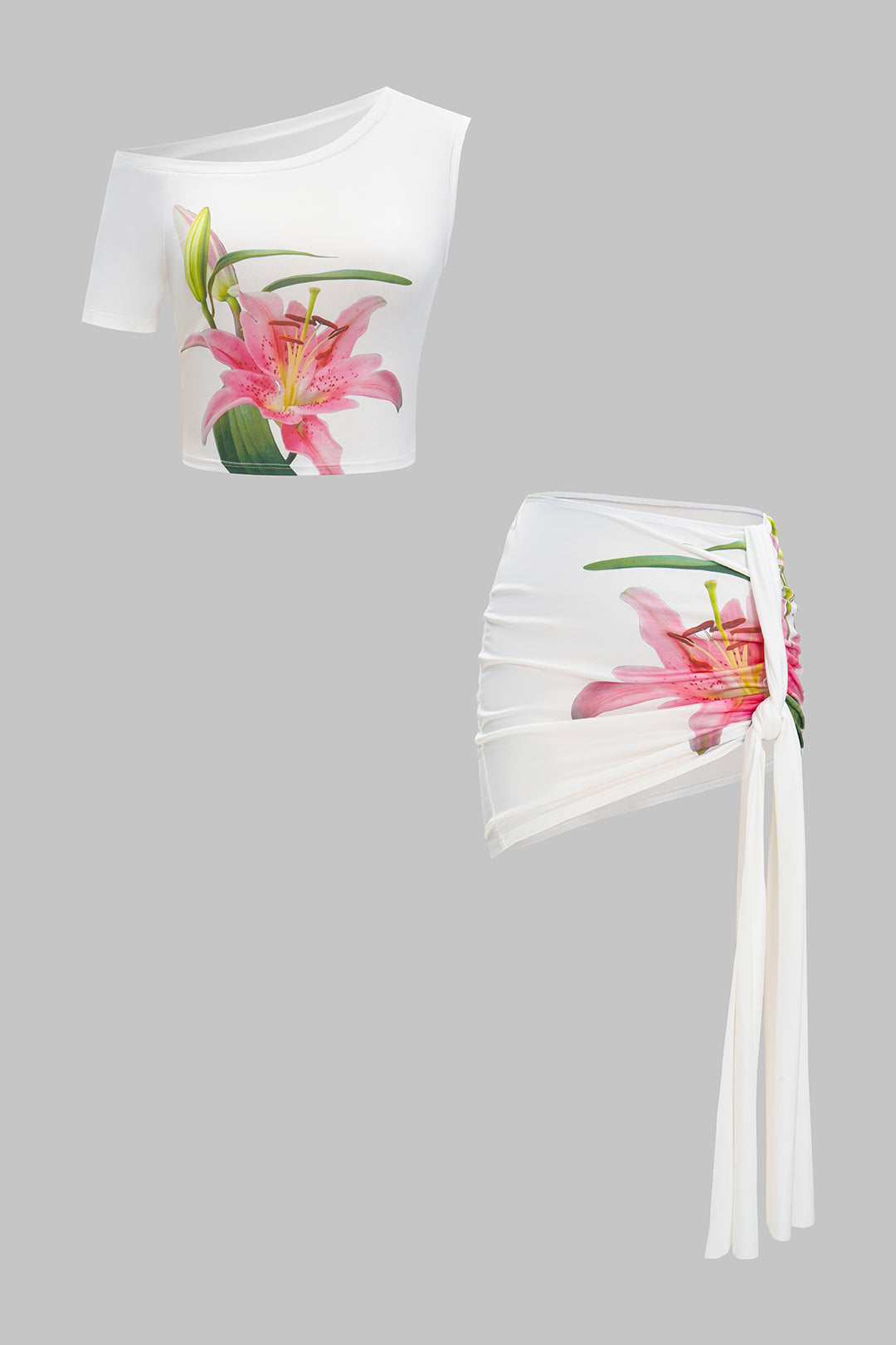 Květinový tisk asymetrická nádrž a sada přední sukně