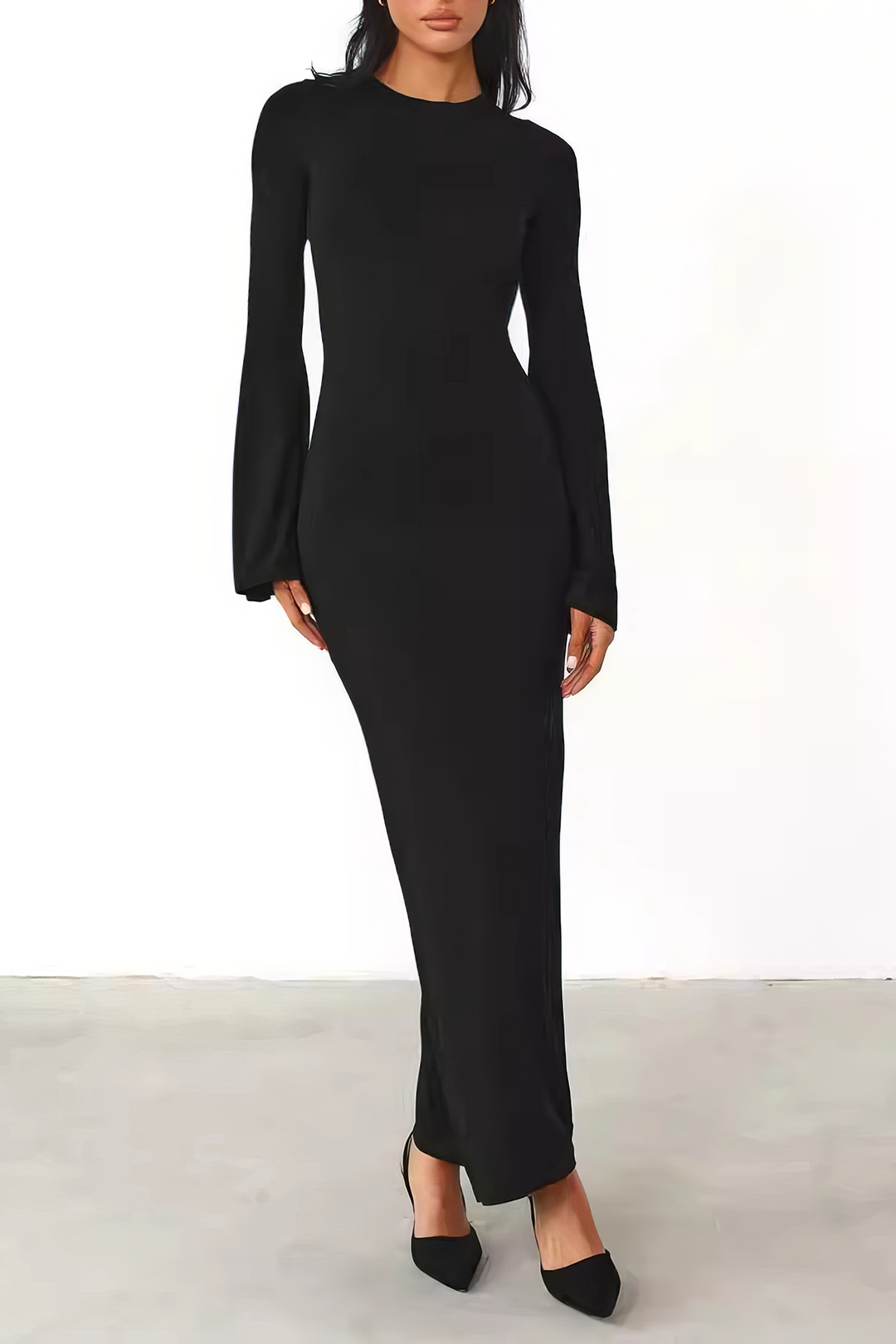 Solid Knit Bell Sleeves Lace Up Cut Out Backless Dress