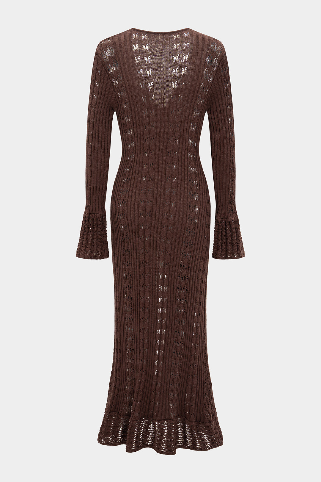 Knit Cut Out Button Ruffle Short Sleeve Dress