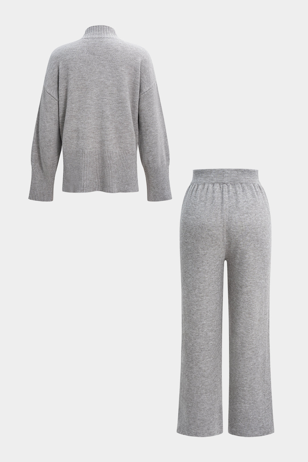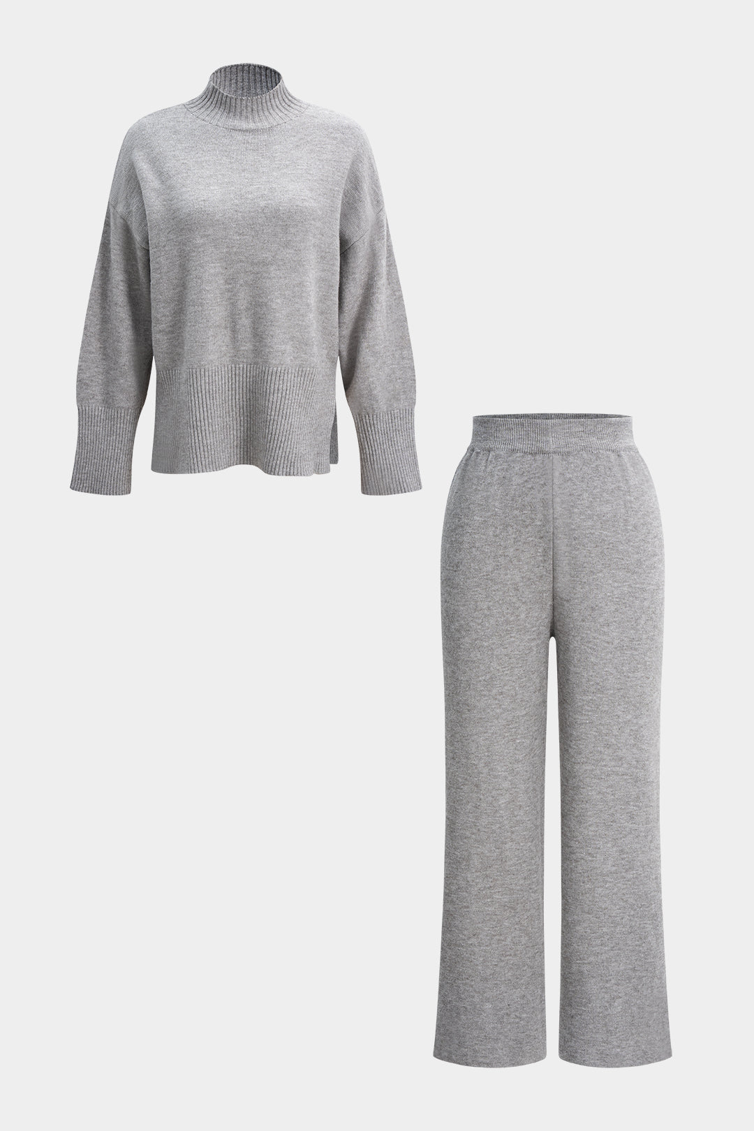 Knit Mock Neck Side Slit Long-Sleeve Top And Wide Leg Pants