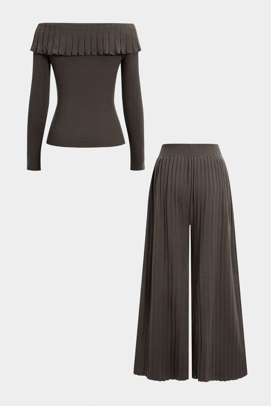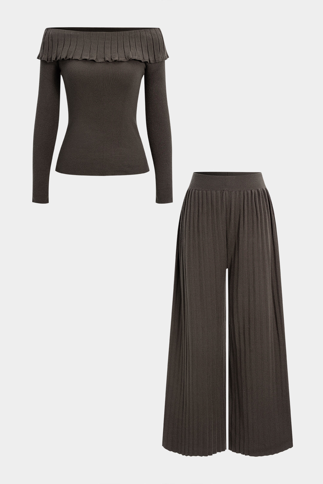 Knit Off Shoulder Ruffle Long-Sleeve Top And Wide Leg Pants Set