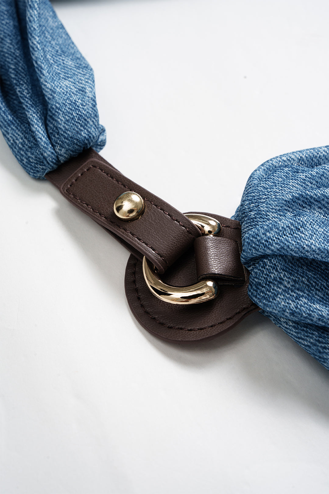 Denim Print Asymmetrical Draped Cowl Halter Neck Sleeveless Bodysuit