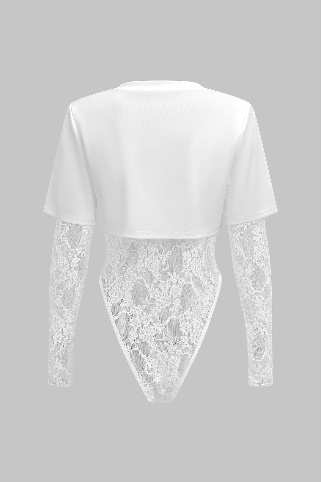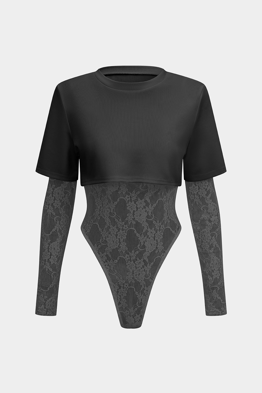 Lace Patchwork Round Neck Long Sleeve Bodysuit