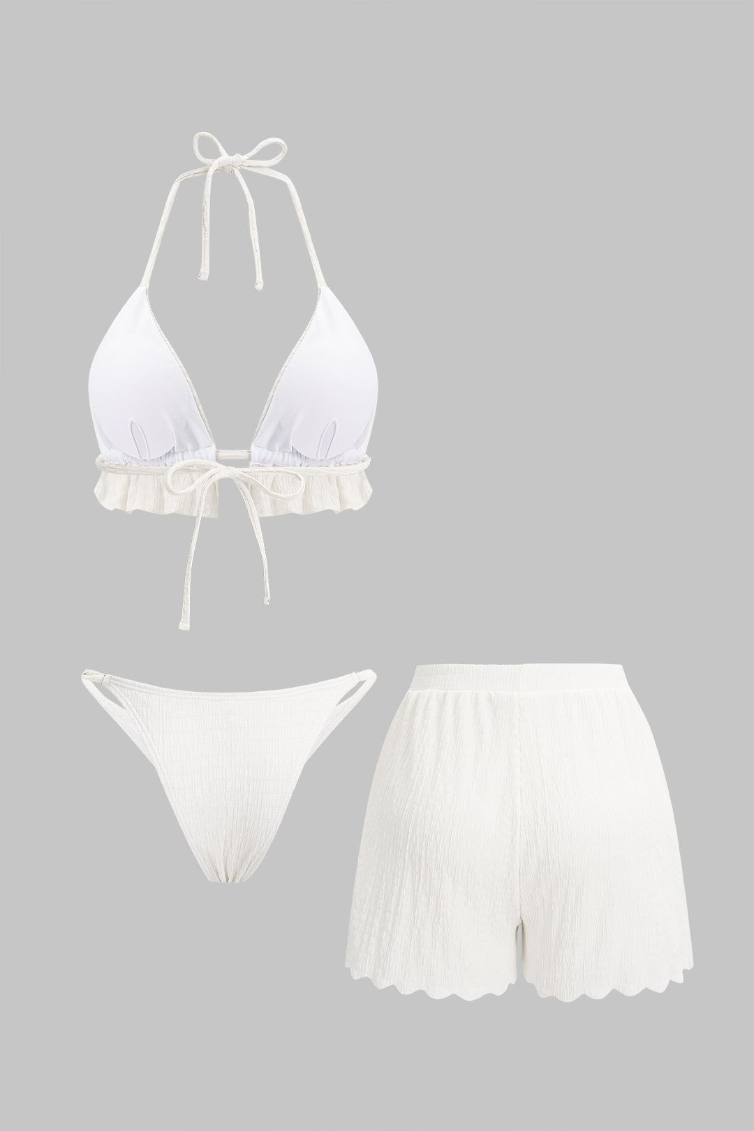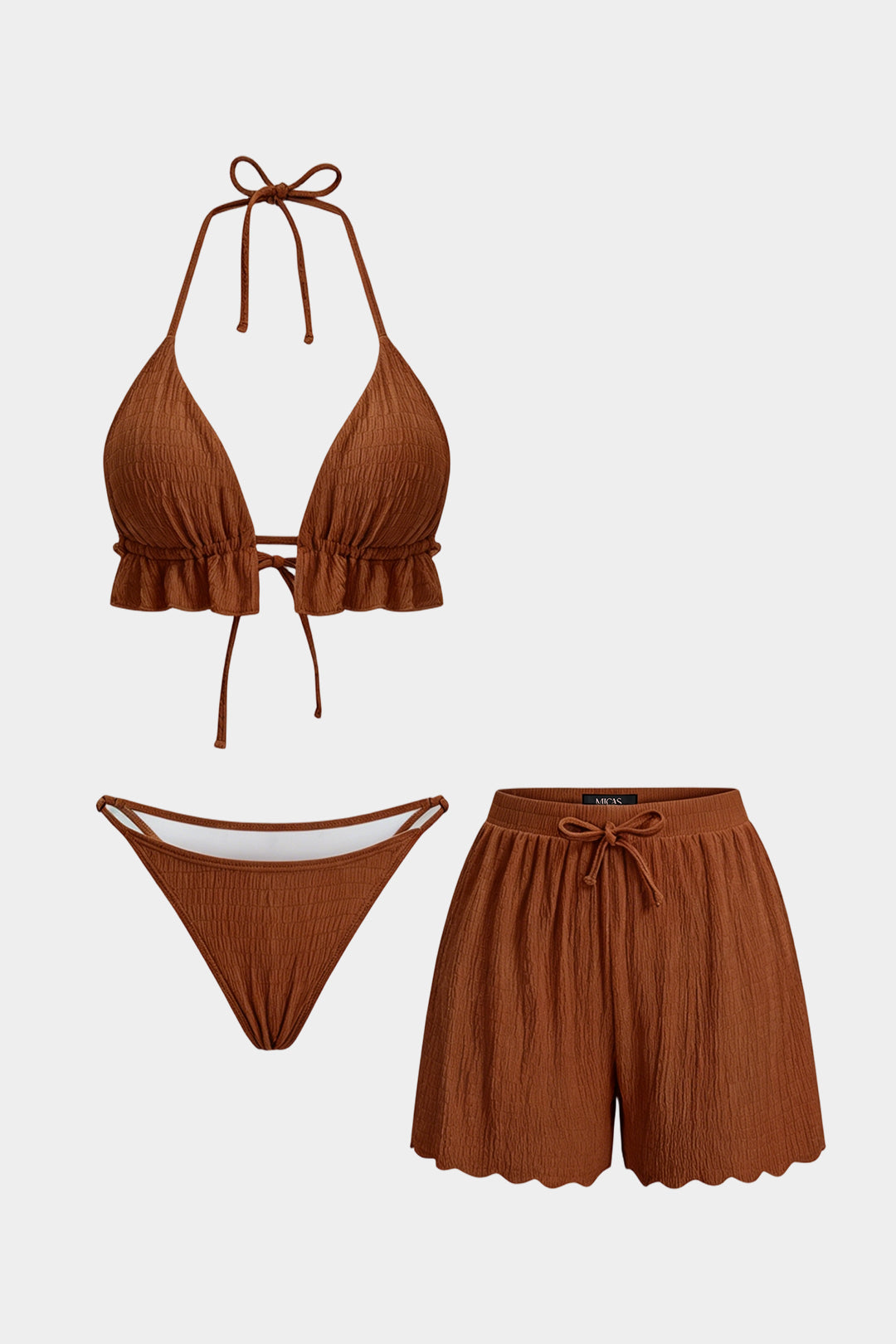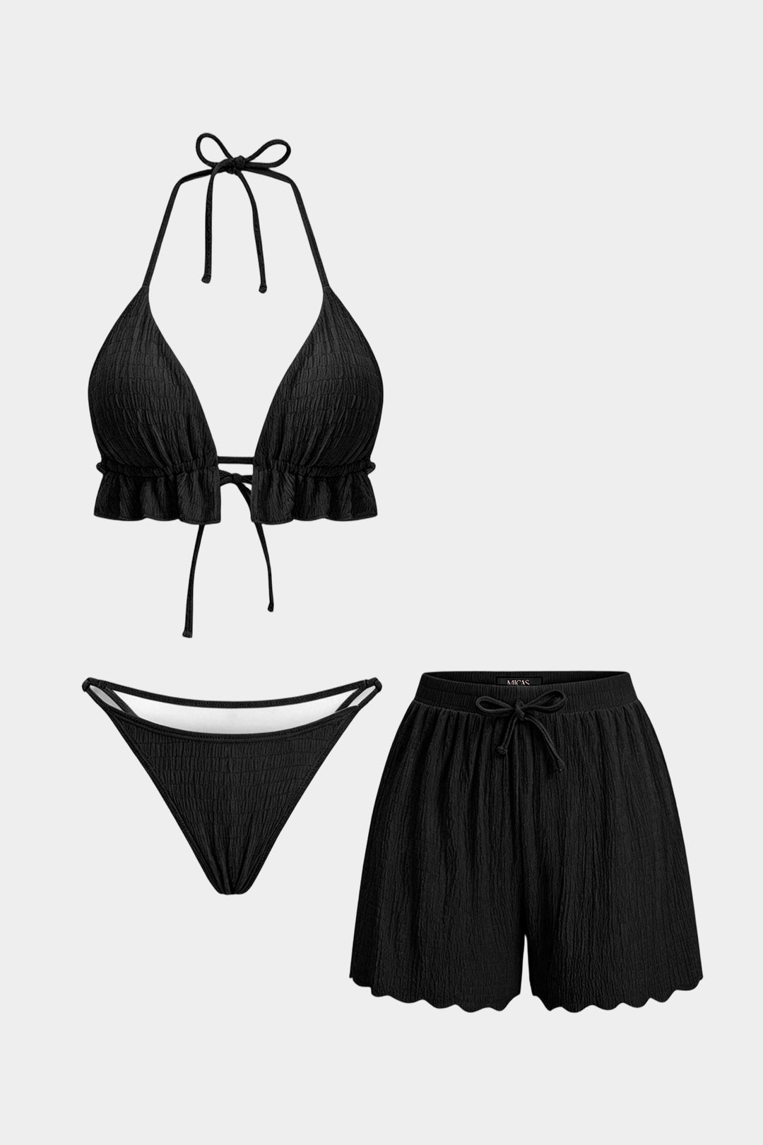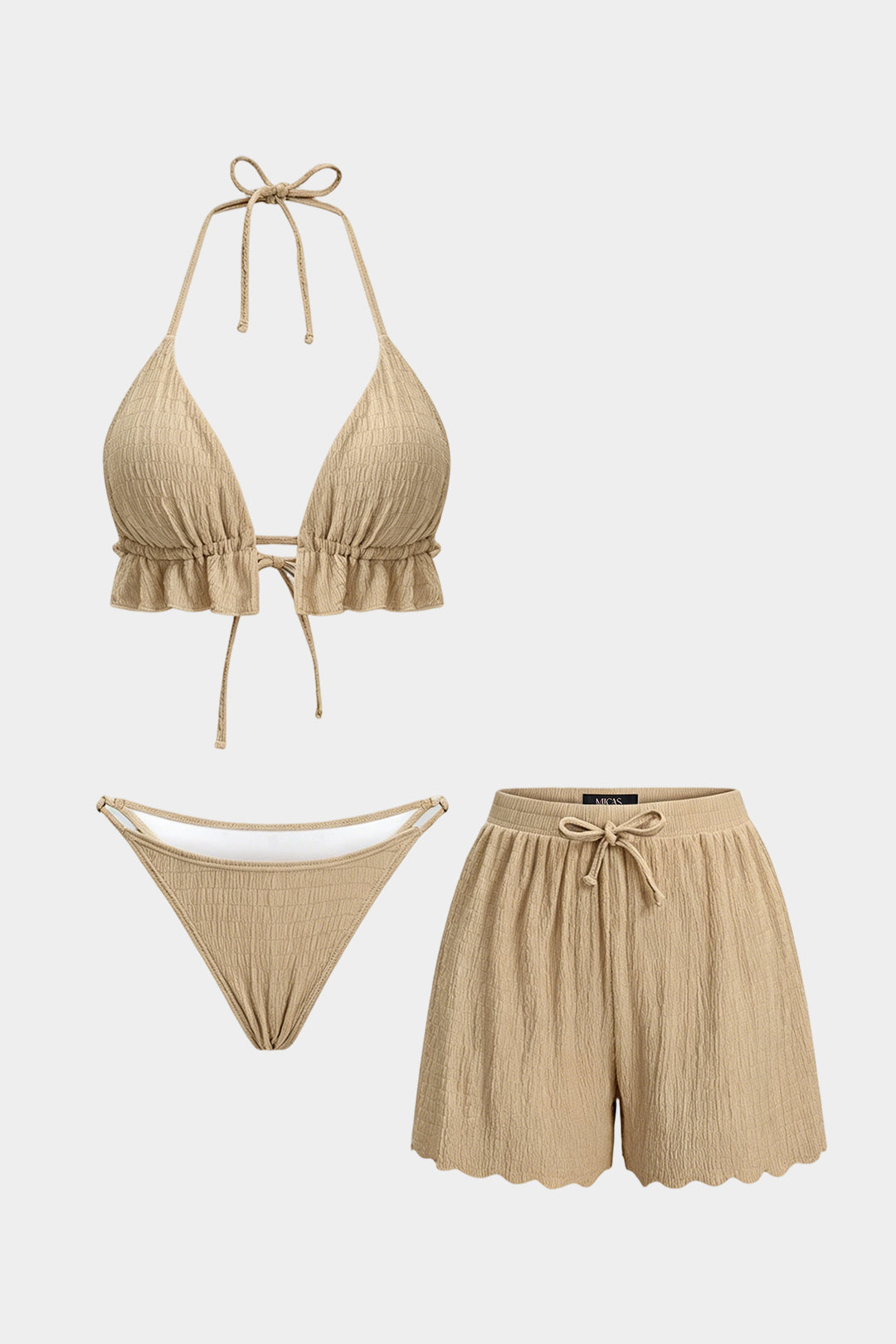 Textured Halter Neck Tie-Up Bikini Set