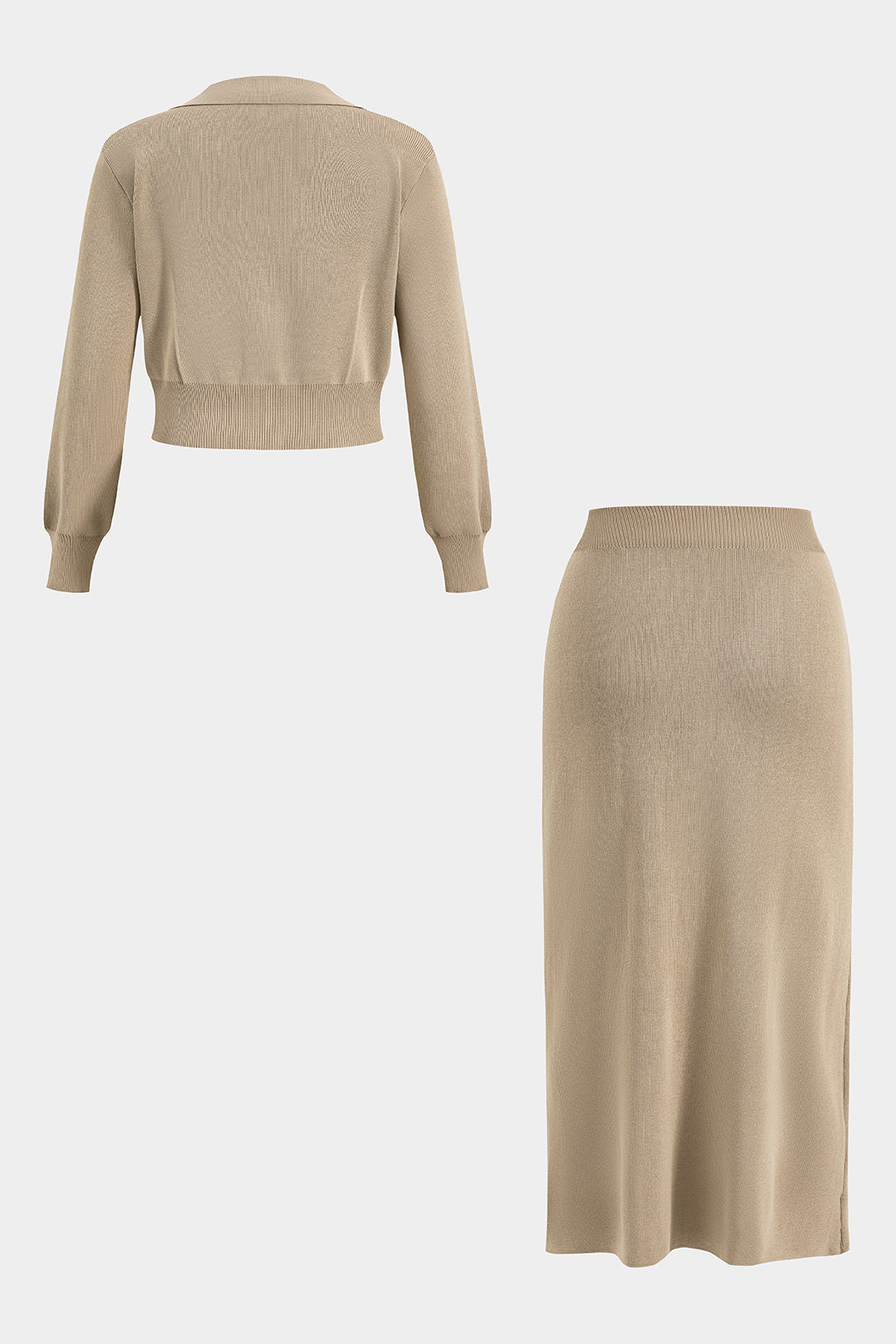 Plus Size Knit Button Pocket Long-Sleeve Top And Skirt Set