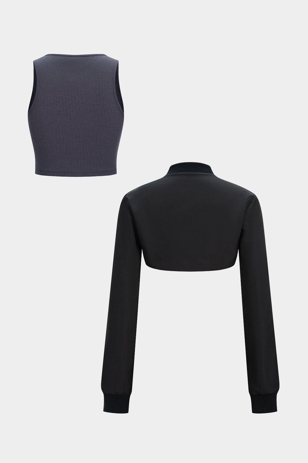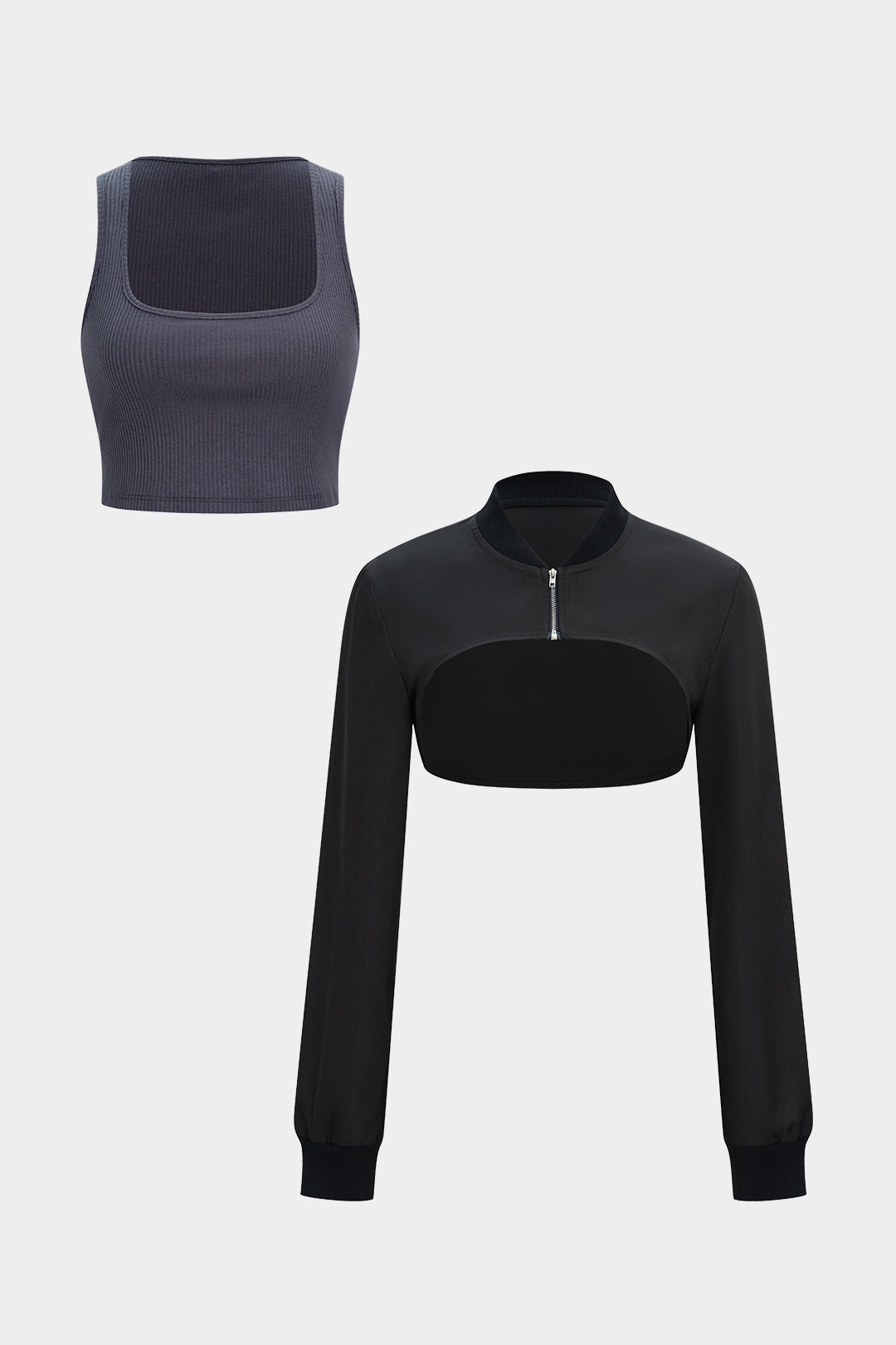 Zipper Long-Sleeve Cropped Top With Square Neck Tank Top