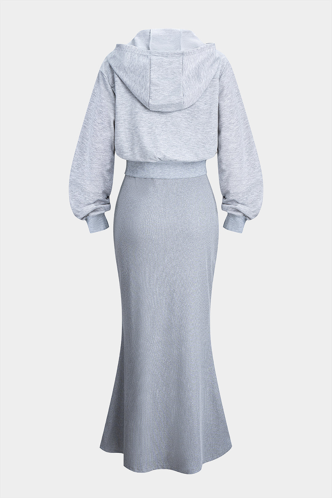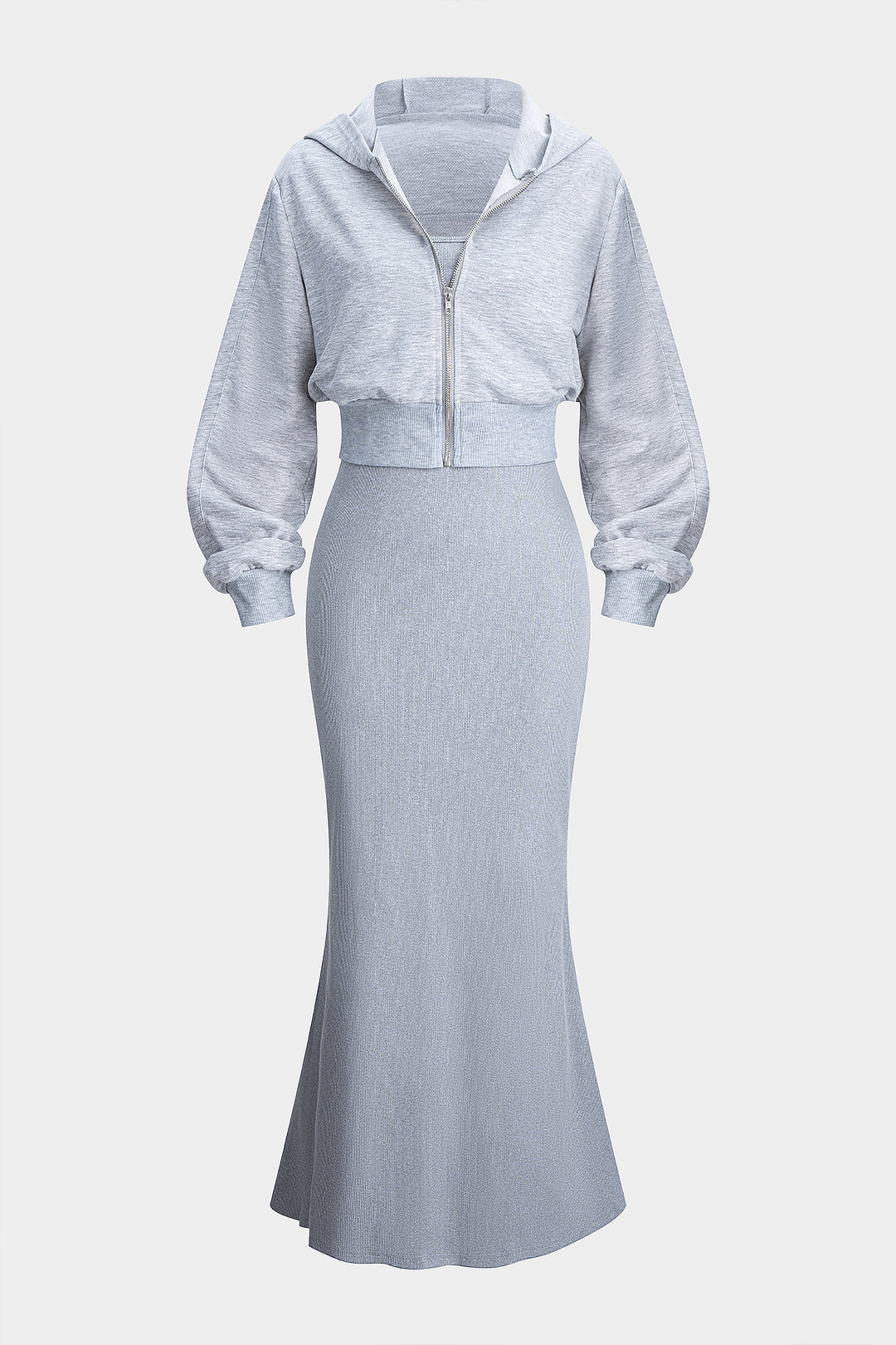 Solid Zipper Hooded Outerwear And Dress Set