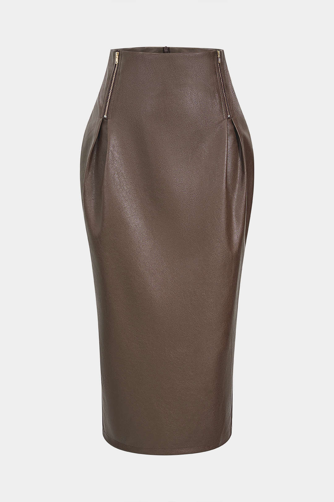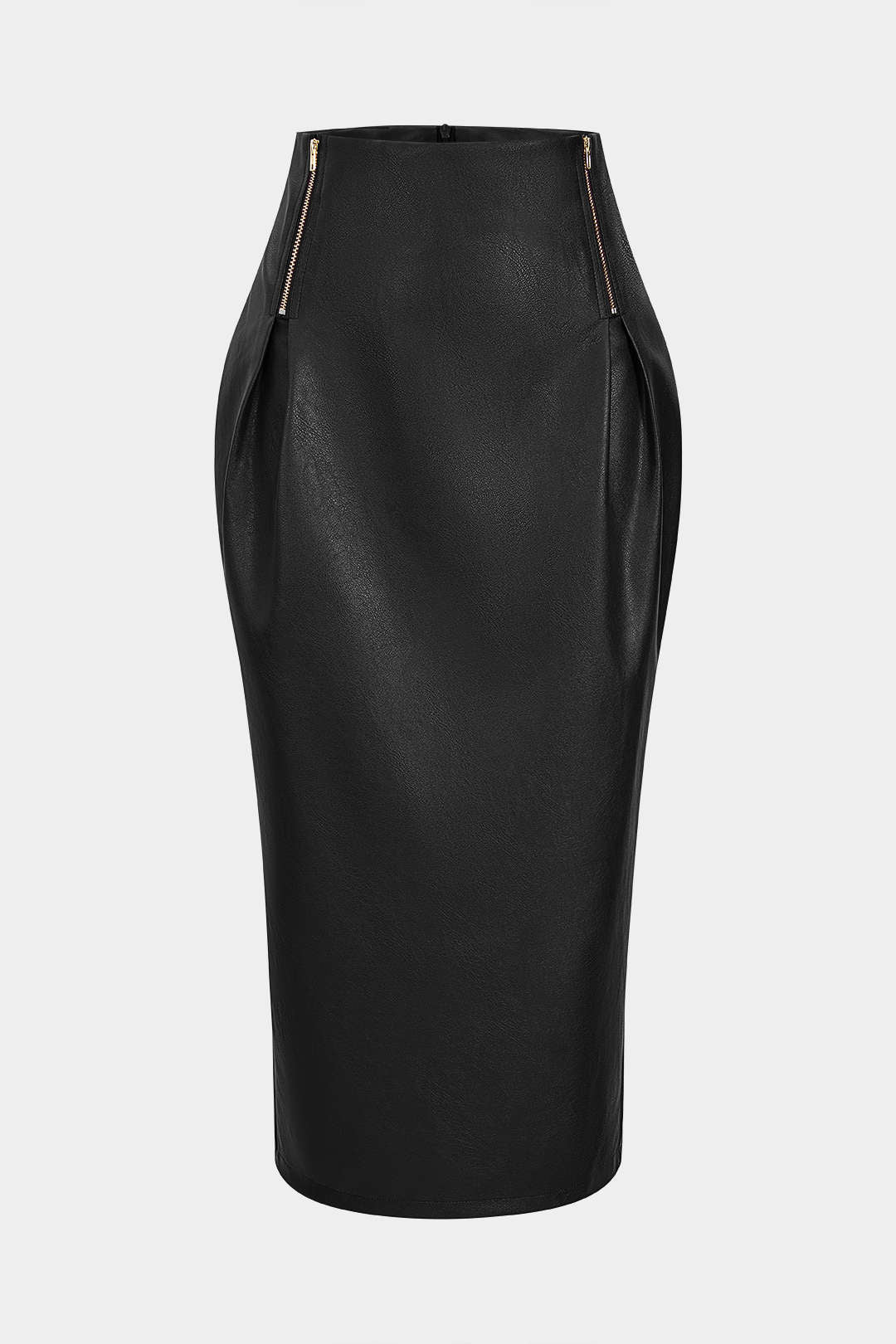 Faux Leather Zipper High Waist Skirt