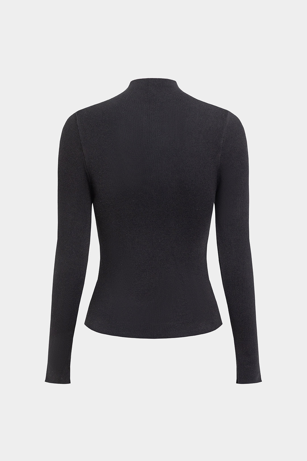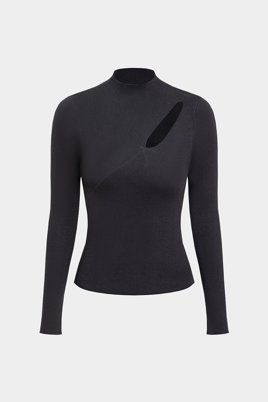 Knit Cut Out Mock Neck Long-Sleeve Top