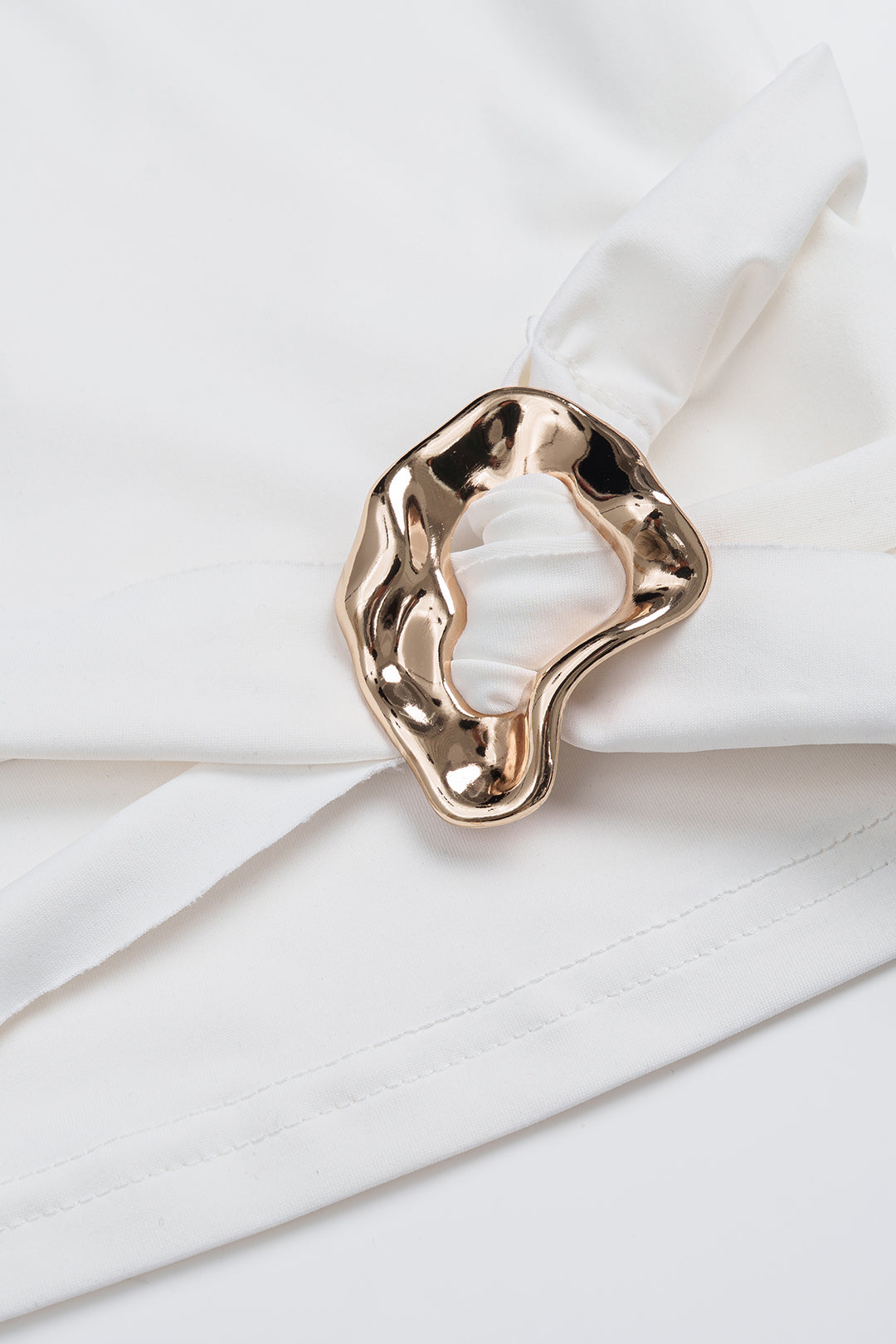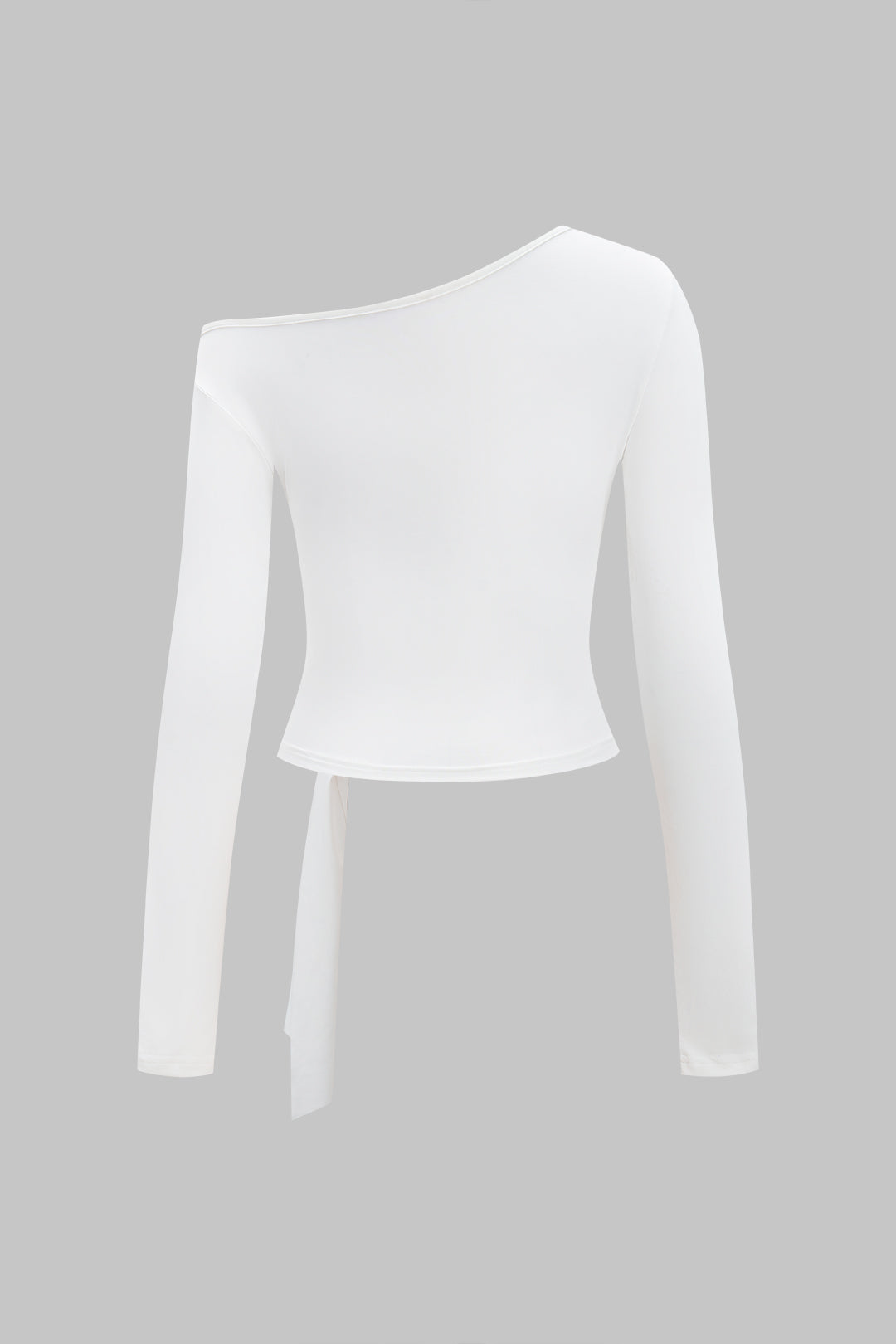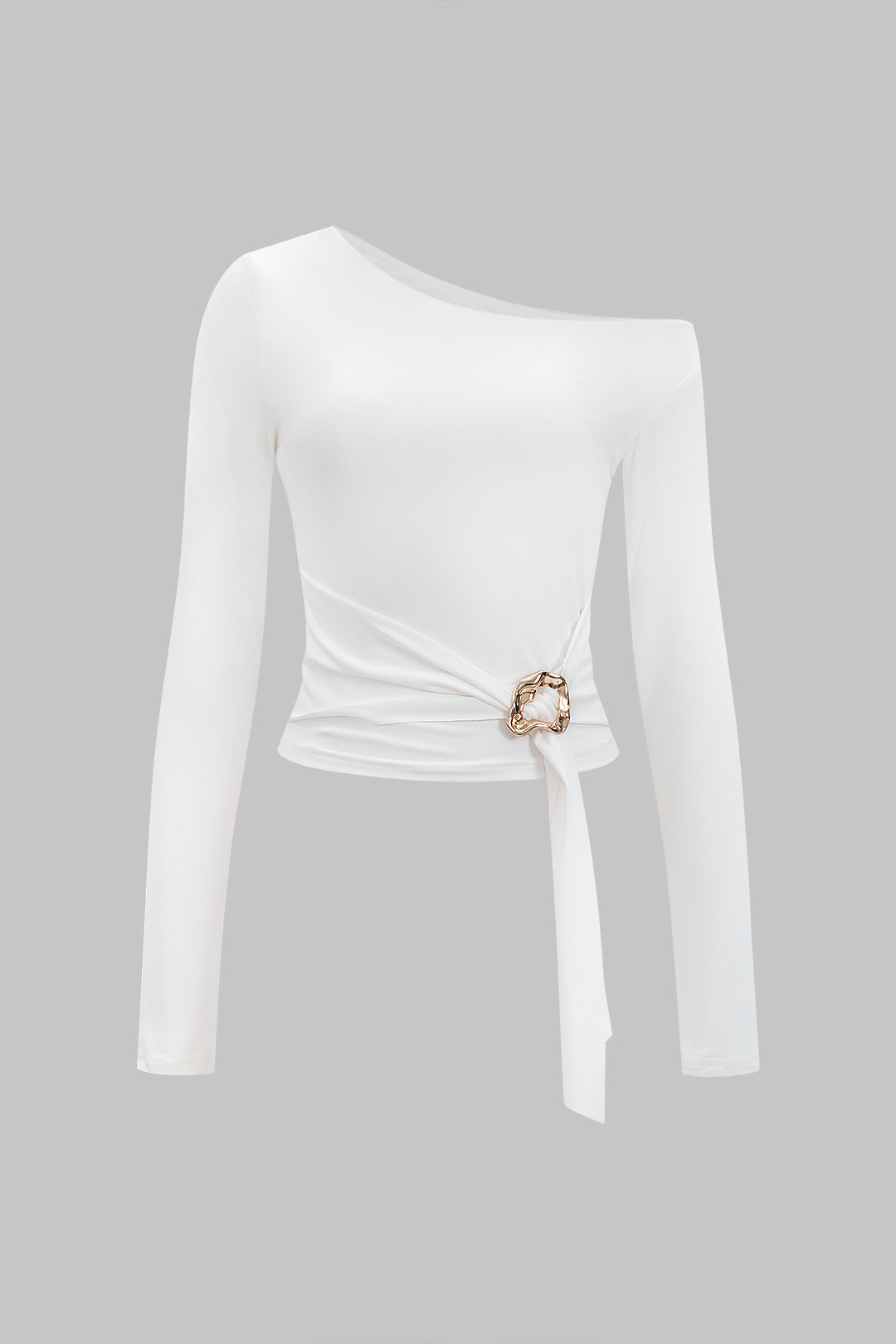 Solid Metallic Decor One Shoulder Long-Sleeve Top