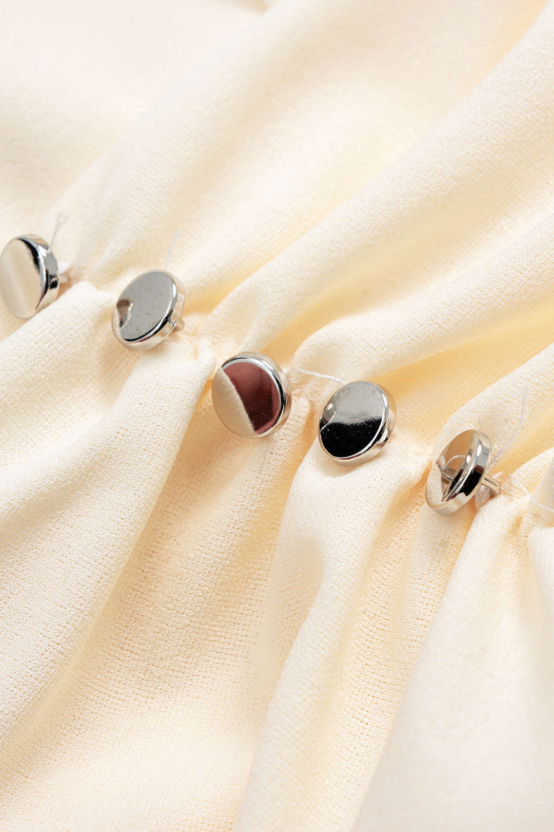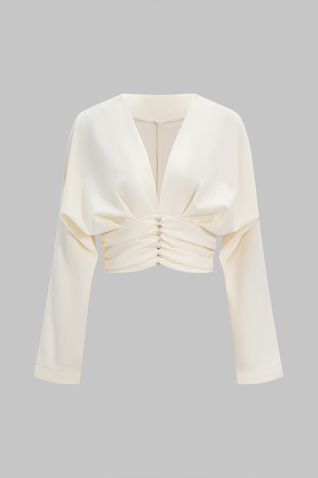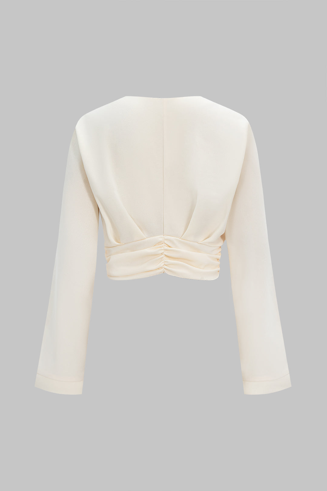 Deep V-Neck Waist-Cinching Ruched Long-Sleeve Shirt