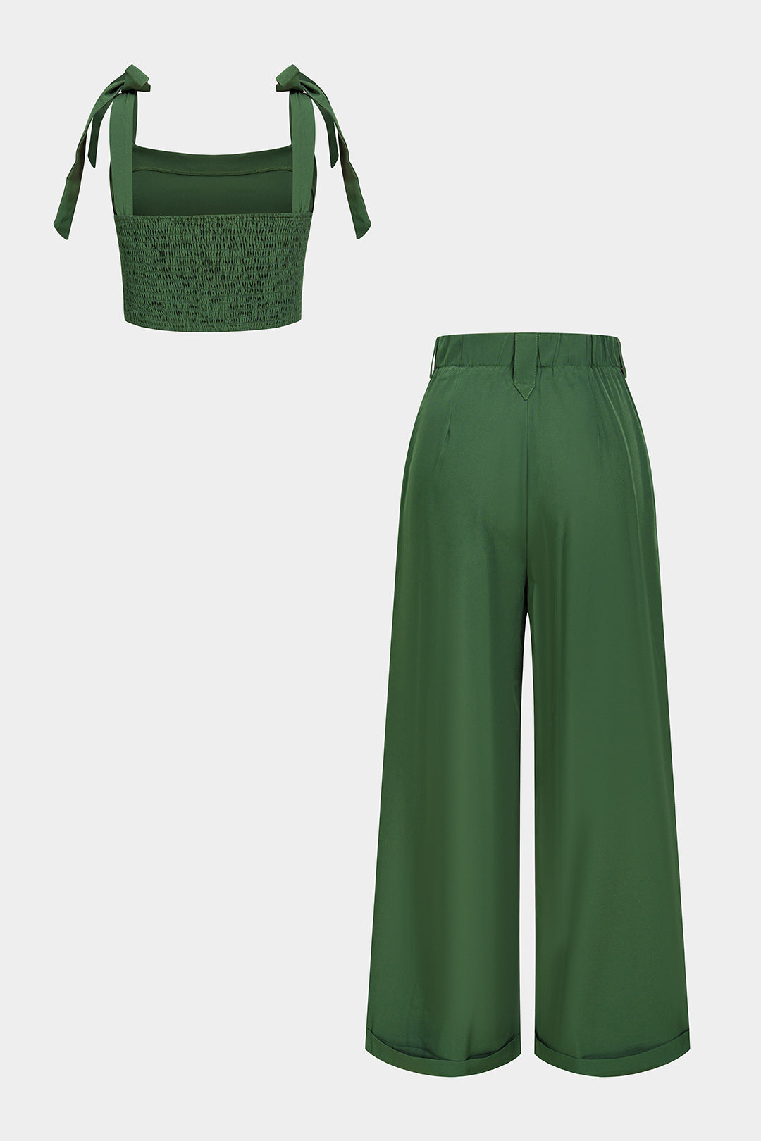 Tie-Up Button Smocked Cami Top And High Waist Wide Leg Pants Set