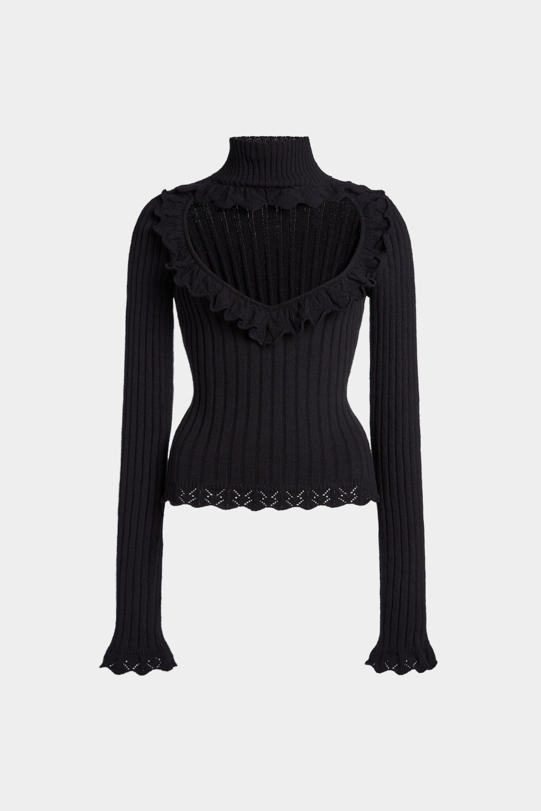 Knit Cut Out Scallop Edge Bell Long-Sleeve Top