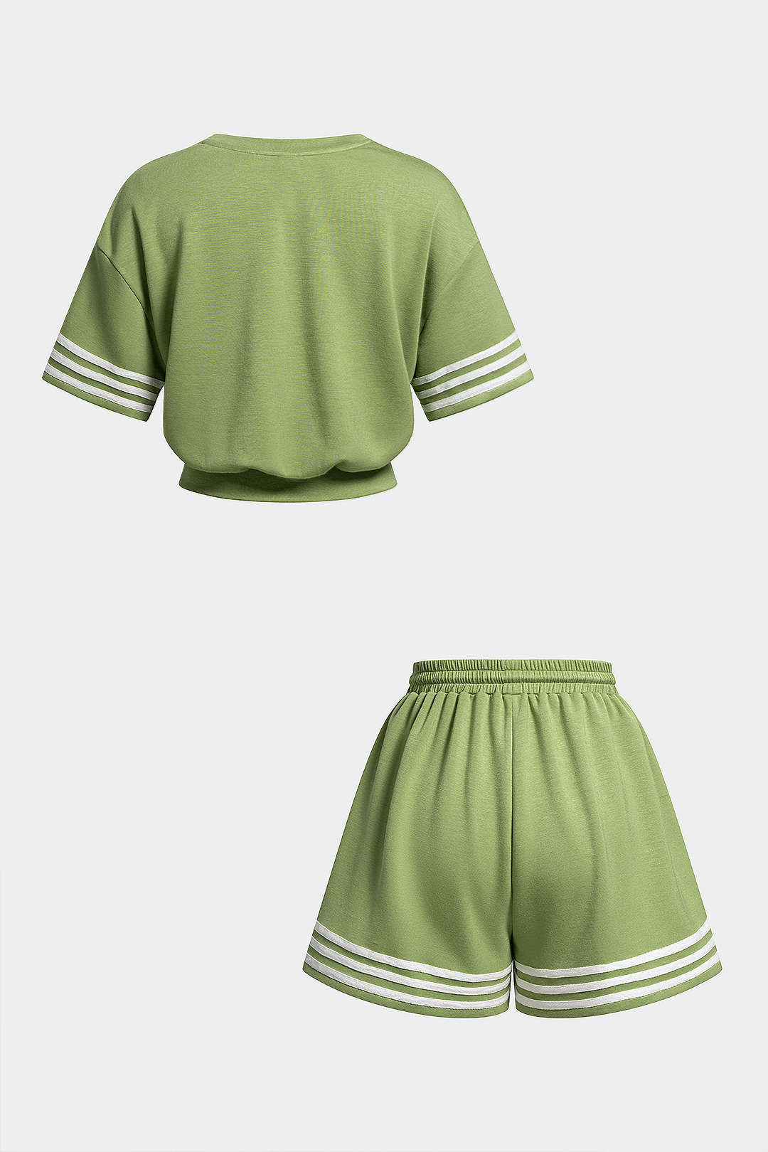 Striped Round Neck Short Sleeve T-Shirt And Drawstring Tie-Up Shorts Set