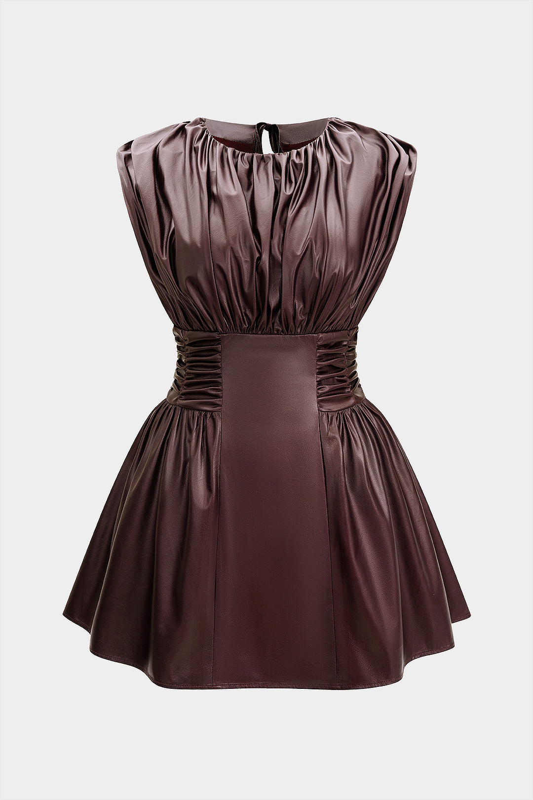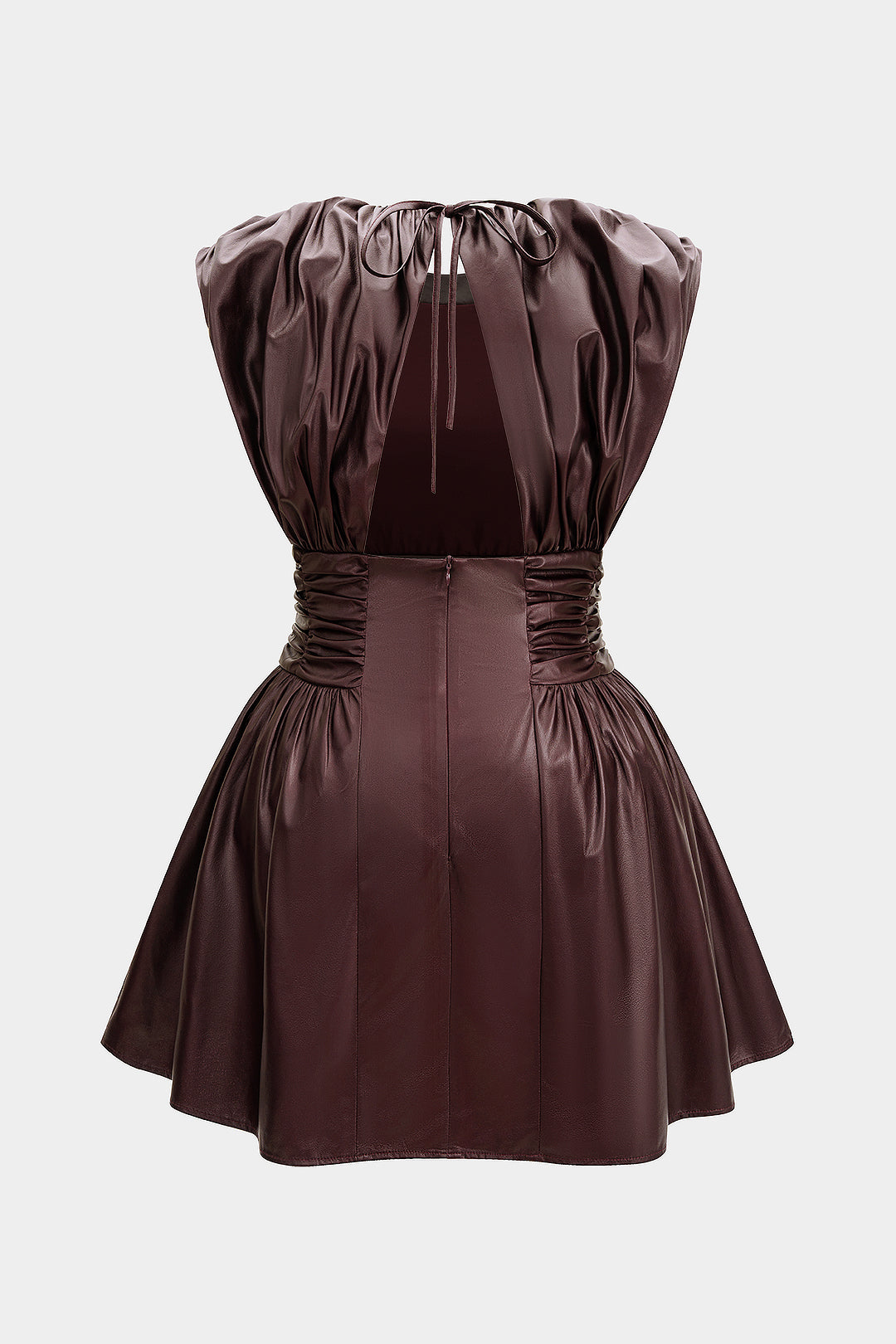 Plus Size Faux Leather Tie Back Backless Ruched Sleeveless Mini Dress