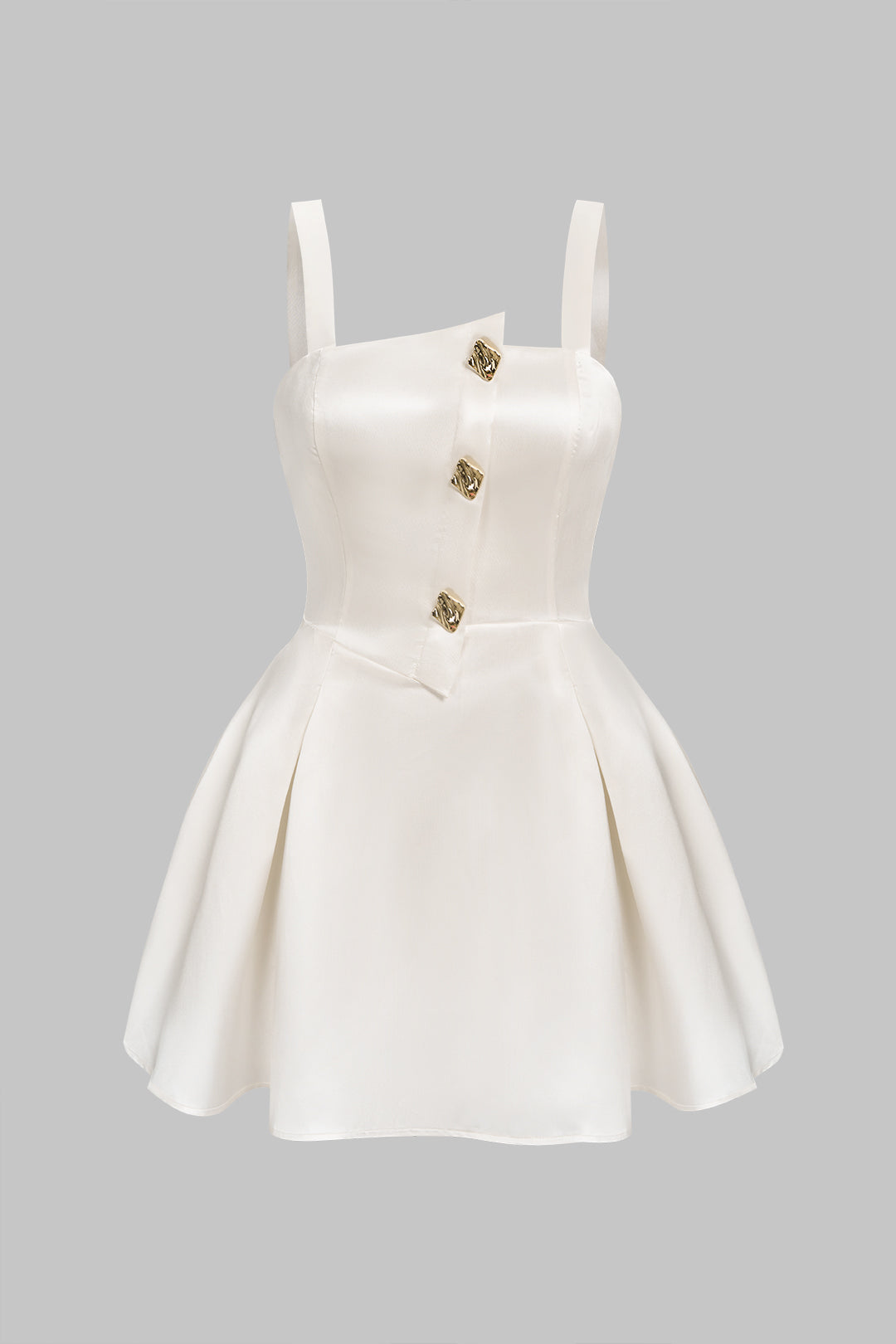 Plus Size Satin Metallic Button Ruched Sleeveless Mini Dress