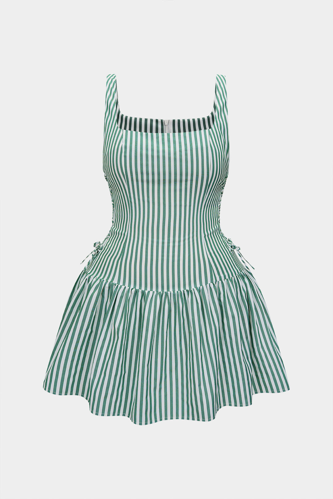 Plus Size Stripes Print Square Neck Tie-Up Ruched Mini Dress