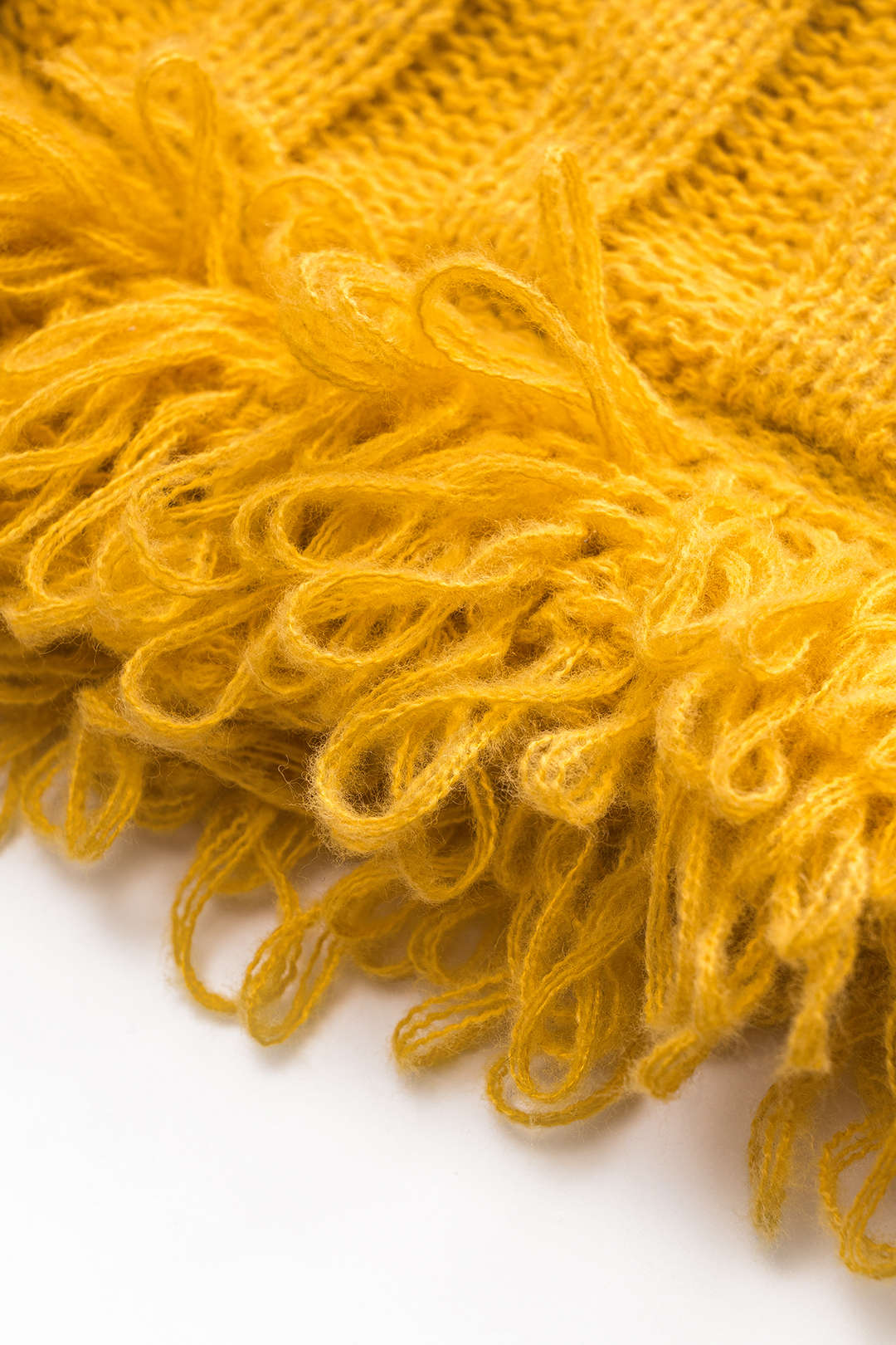 Knit Fringe Long-Sleeve Top And Drawstring Tie-Up Mini Skirt Set