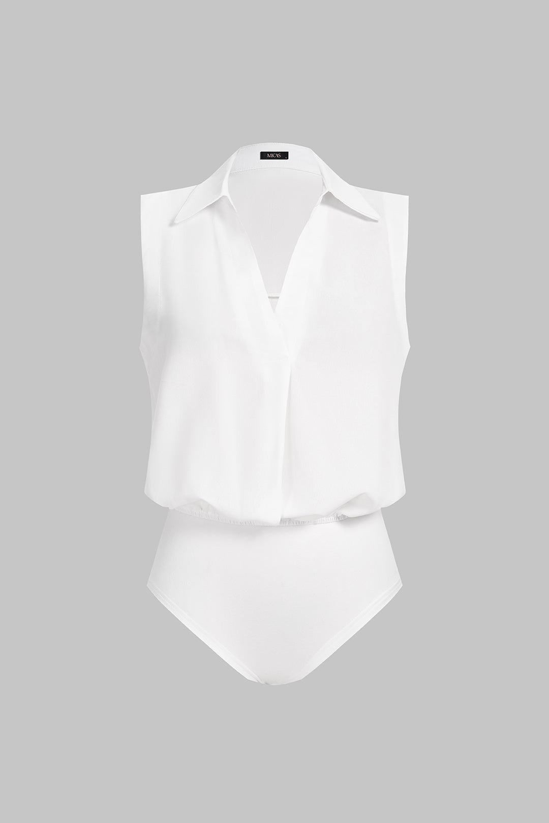 Solid Lapel V-Neck Sleeveless Bodysuit